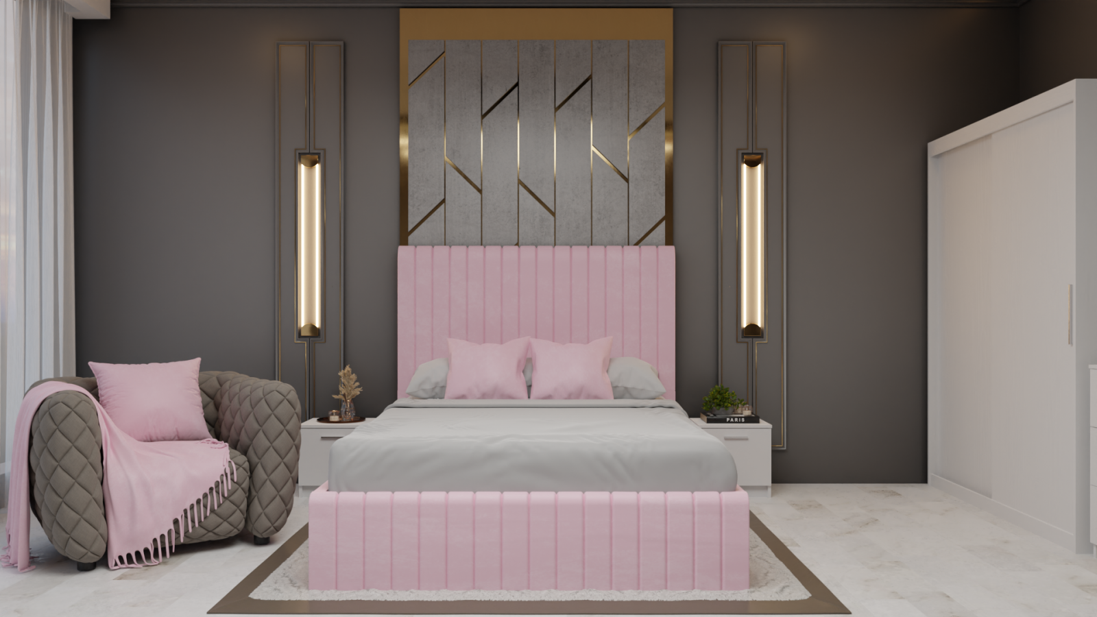 Colecția Dallas se remarcă prin designul modern și elegant, accentuat de riflajele decorative care aduc profunzime și rafinament spațiului. Patul Cairo tapițat în catifea fină, cu tăblie înaltă și linii contemporane, oferă un confort desăvârșit și un plus de stil. Ansamblul creează o atmosferă caldă, echilibrată și sofisticată – ideală pentru un dormitor modern și primitor.
