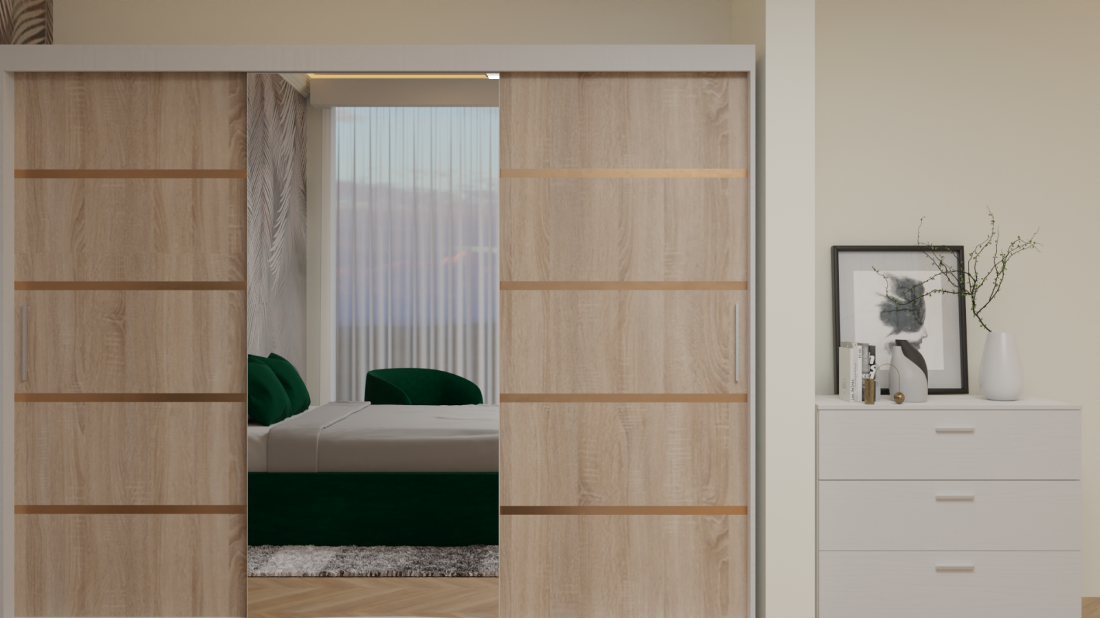Dormitor Cairo Tapitat Dressing 250x200 3 Usi Cu Oglinda Alb&Sonoma