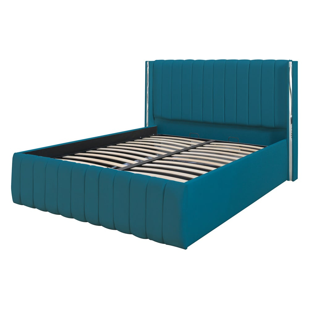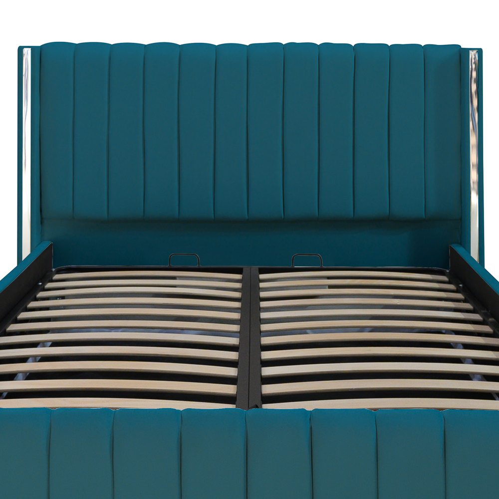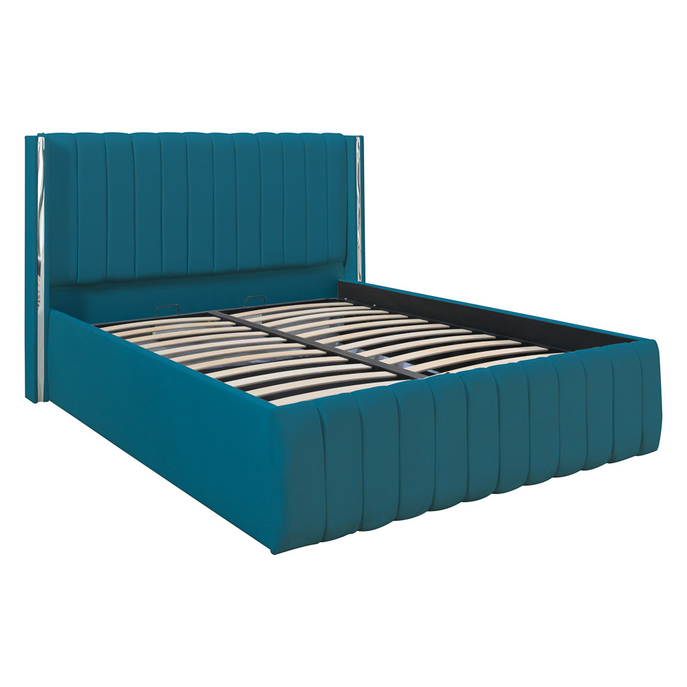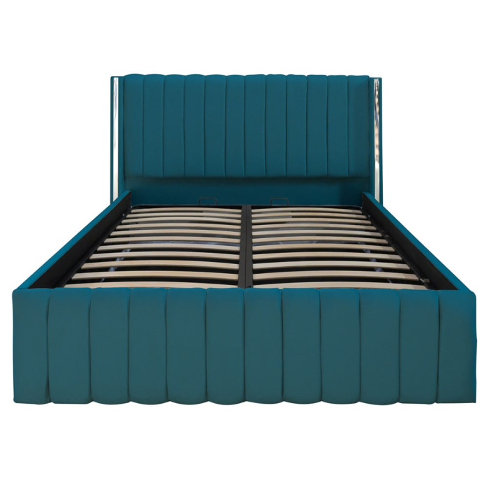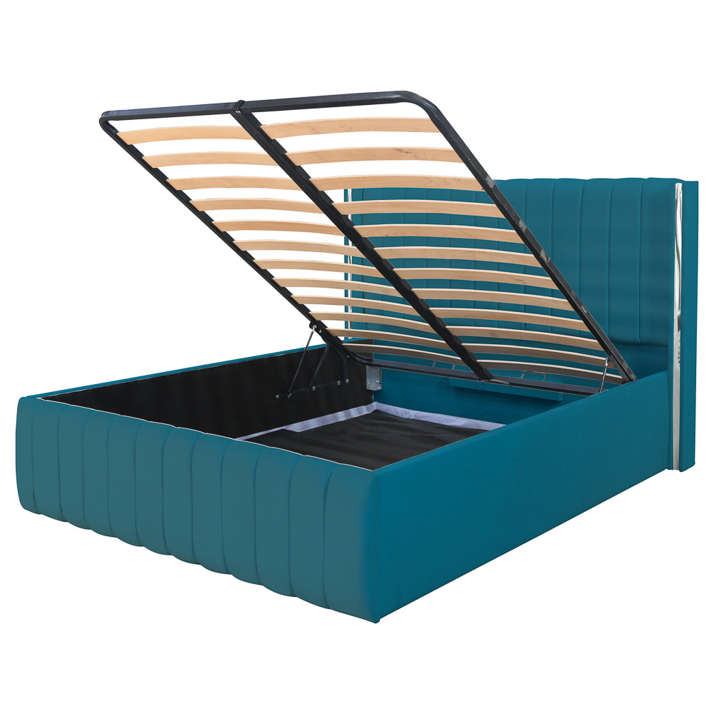 Patul este dotat cu o somieră rabatabilă metalică, ce ascunde un spațiu generos de depozitare.
