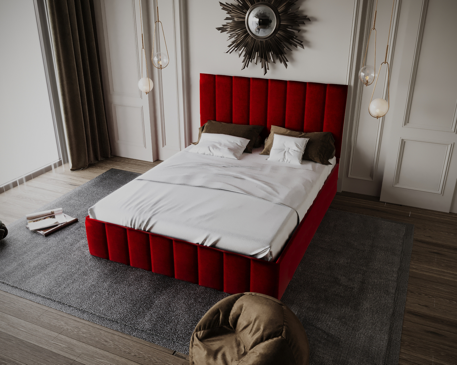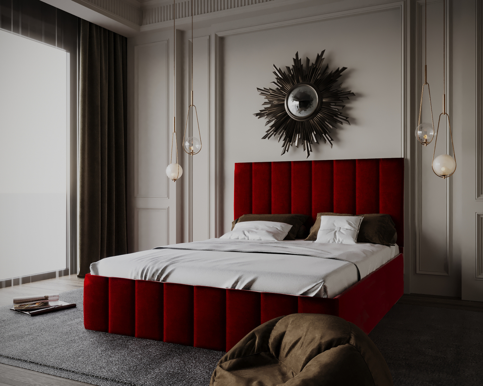 Patul este realizat din materiale calitative, are o strucura din pal melaminat fiind tapițat cu un material textil catifelat.