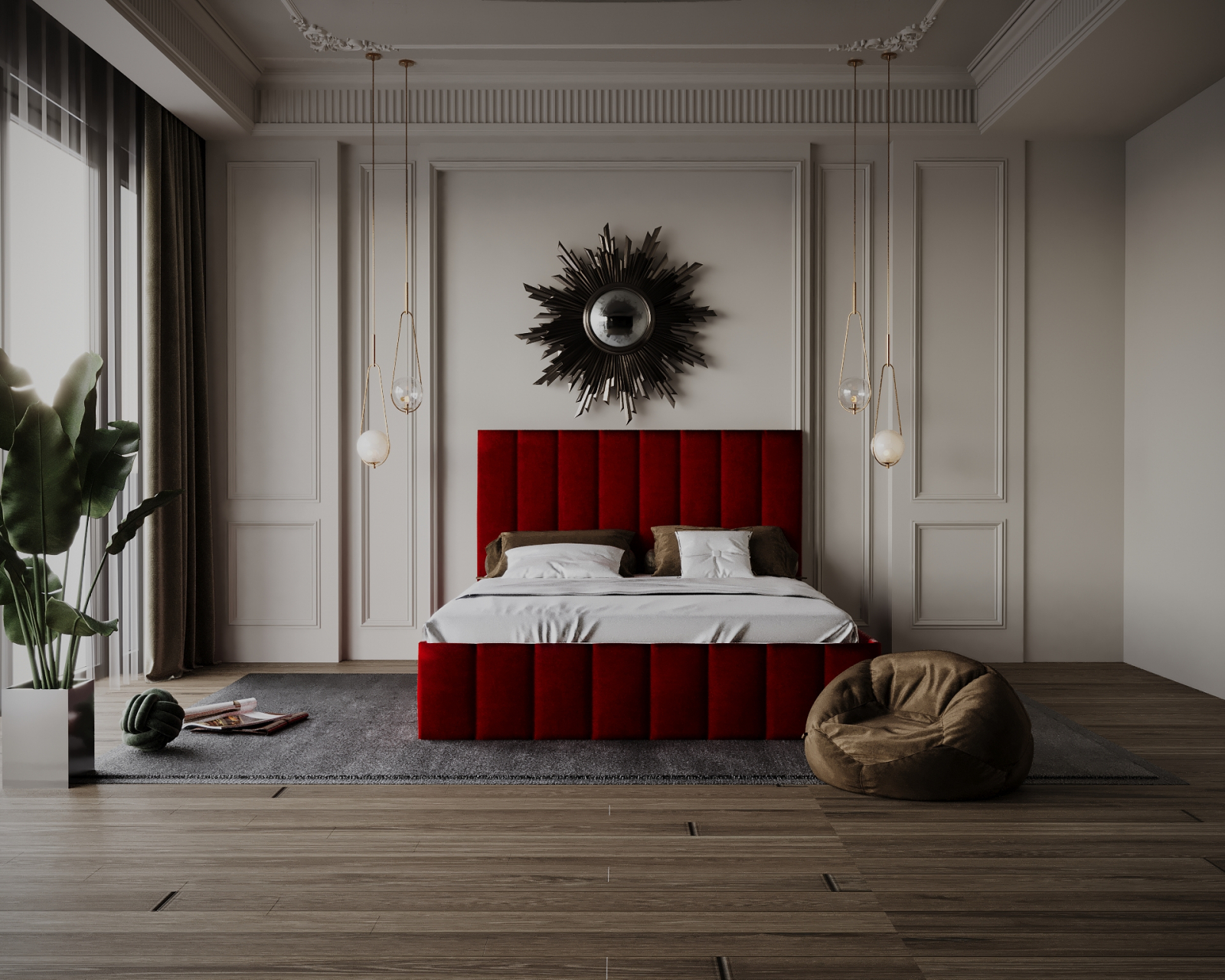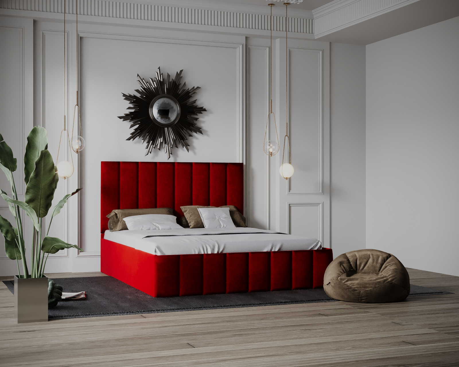 Patul este realizat din materiale calitative, are o strucura din pal melaminat fiind tapițat cu un material textil catifelat.