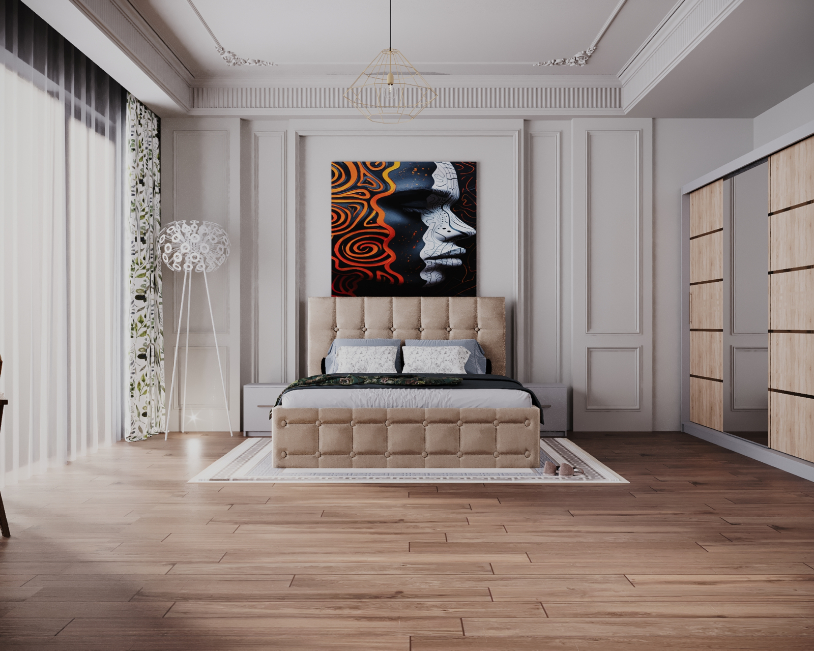 Patul este realizat din materiale calitative, are o strucura din pal melaminat fiind tapițat cu un material textil catifelat.