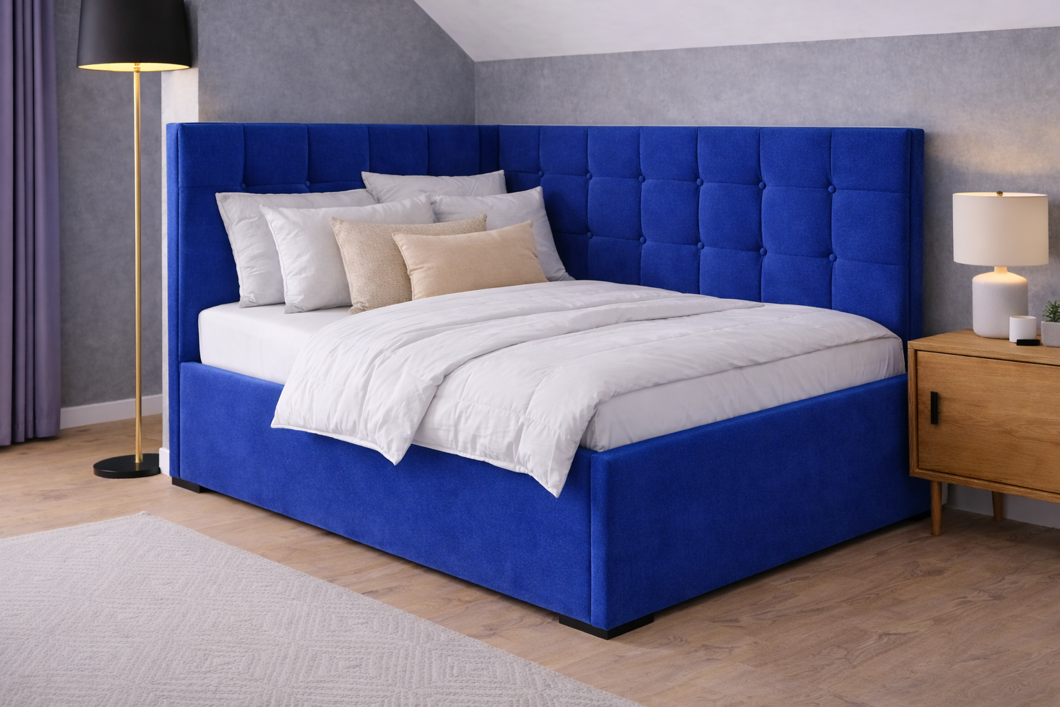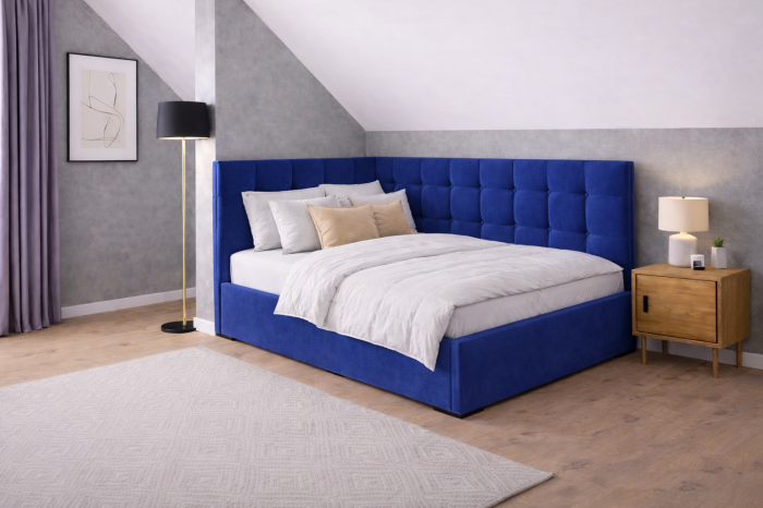 Patul tapițat Regal Corner îmbină eleganța modernă cu confortul desăvârșit. Cu o tăblie de colț tapițată și finisaje premium, oferă un aspect rafinat și o atmosferă caldă în dormitor.