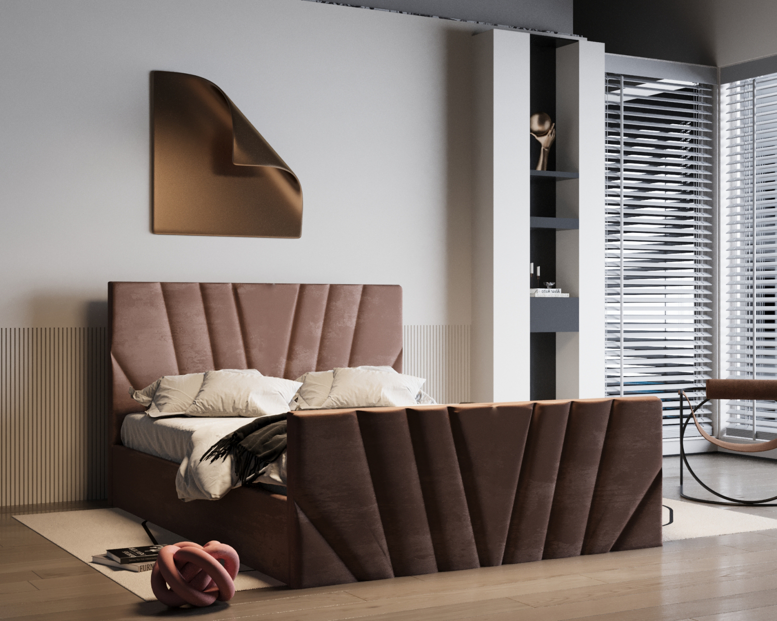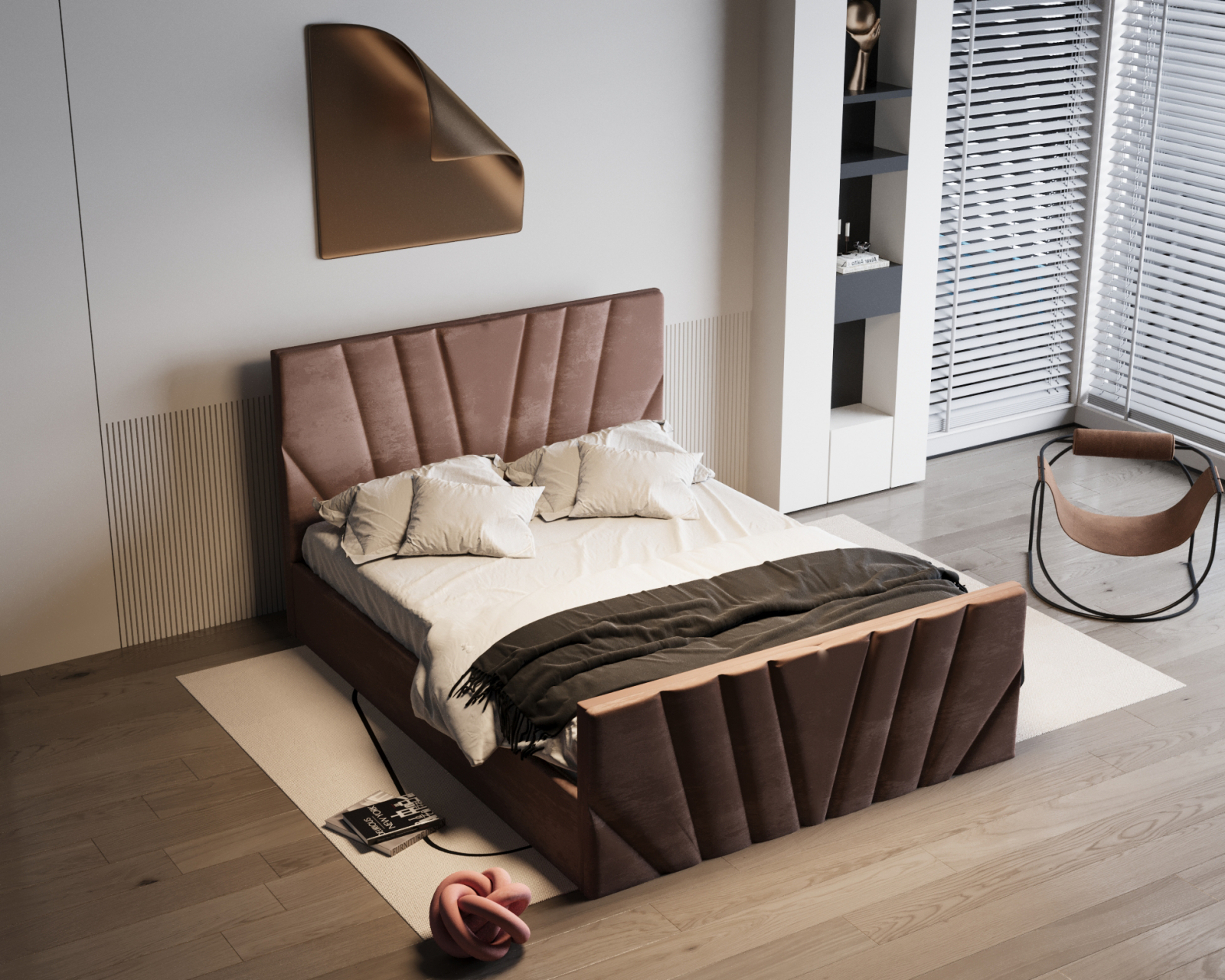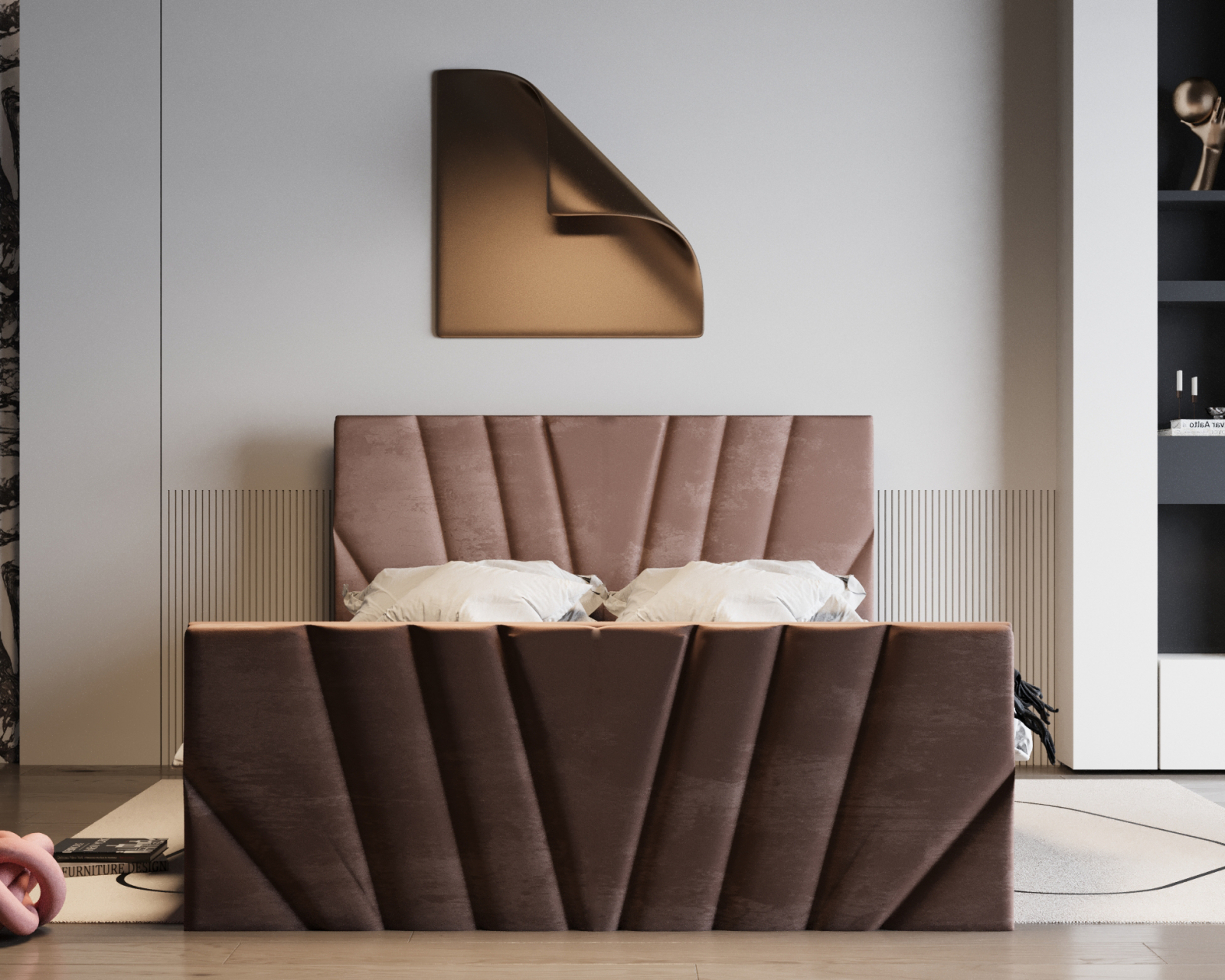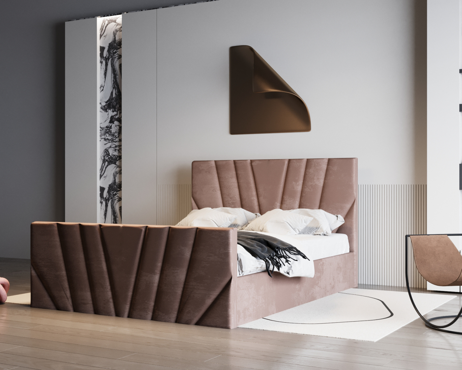 Patul Tony impresionează prin designul său modern și tapițeria luxoasă. Liniile geometrice și textura catifelată adaugă rafinament oricărui dormitor, oferind în același timp un confort excelent pentru odihnă.