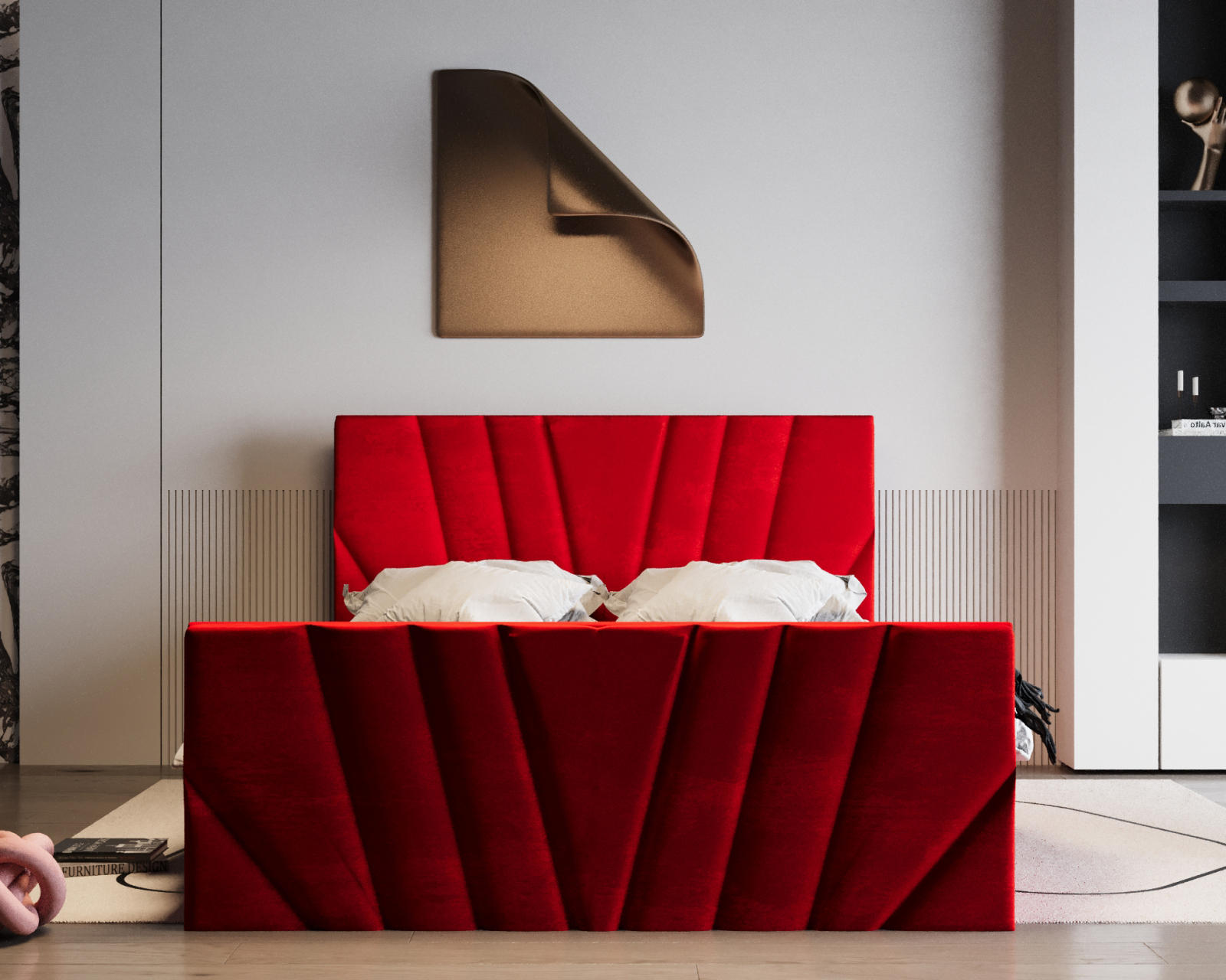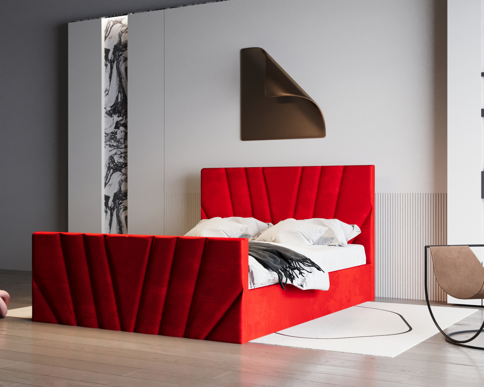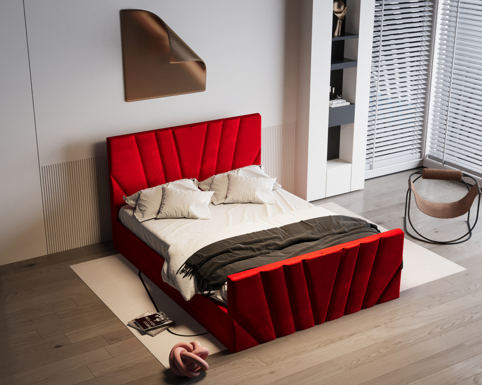 Patul Tony impresionează prin designul său modern și tapițeria luxoasă. Liniile geometrice și textura catifelată adaugă rafinament oricărui dormitor, oferind în același timp un confort excelent pentru odihnă.
