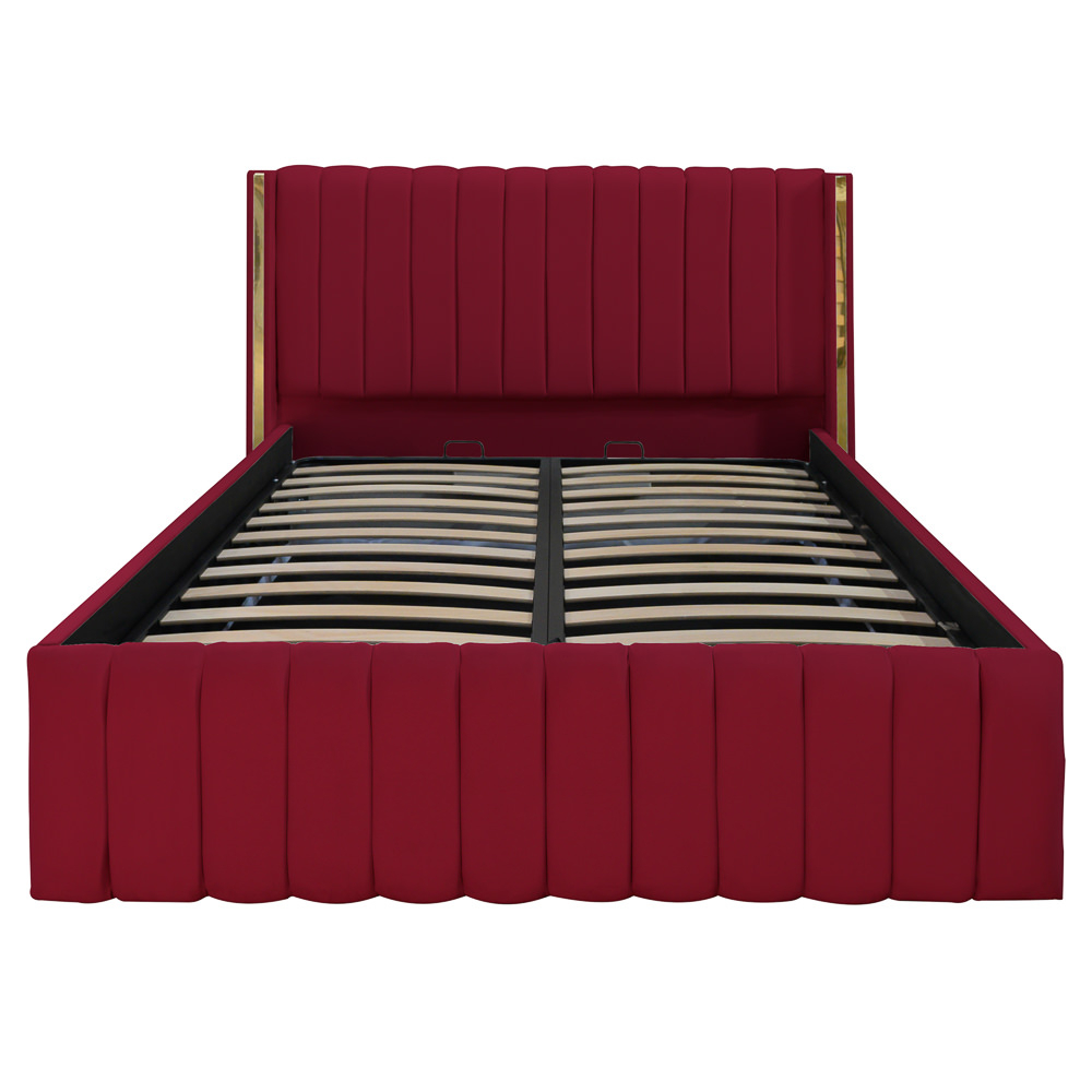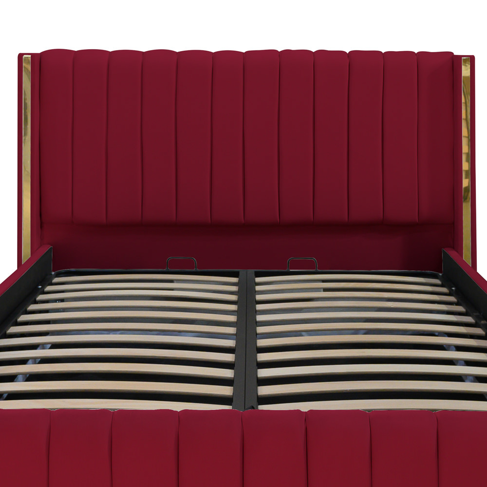 Patul este dotat cu o somieră rabatabilă metalică, ce ascunde un spațiu generos de depozitare.