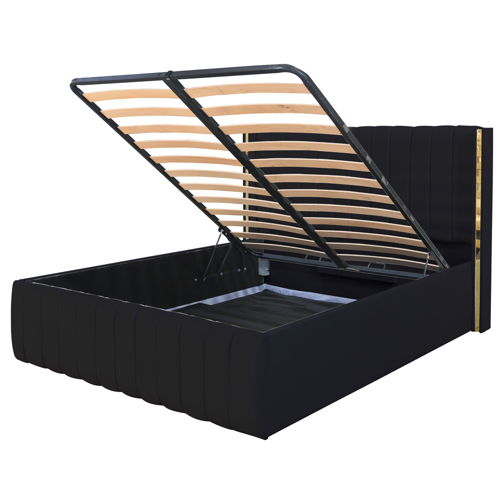 Patul este dotat cu o somieră rabatabilă metalică, ce ascunde un spațiu generos de depozitare.