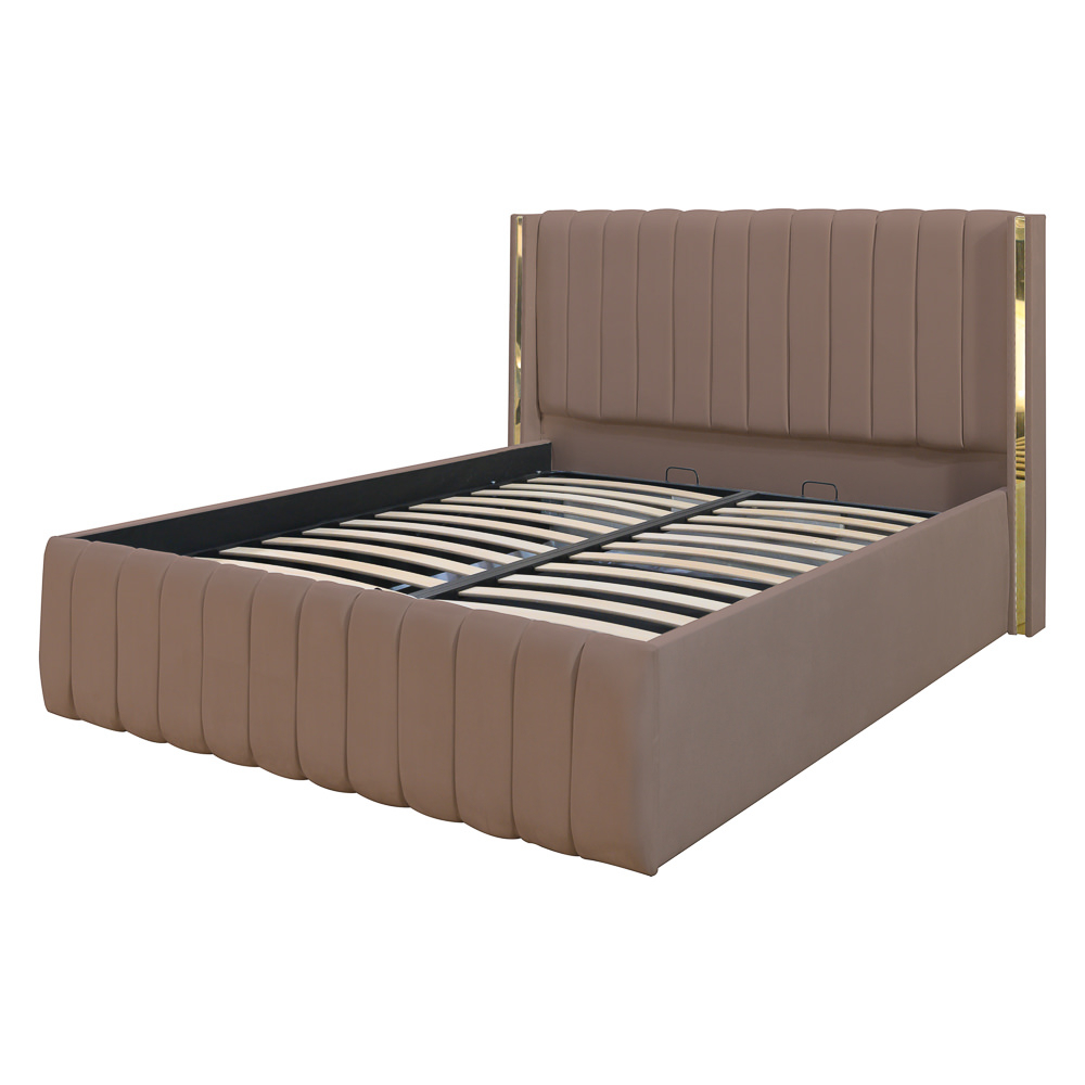 Patul Cairo New îmbină perfect eleganța contemporană cu funcționalitatea practică. Tapițat în catifea premium, fină la atingere și de o calitate superioară, acest model adaugă rafinament oricărui dormitor.