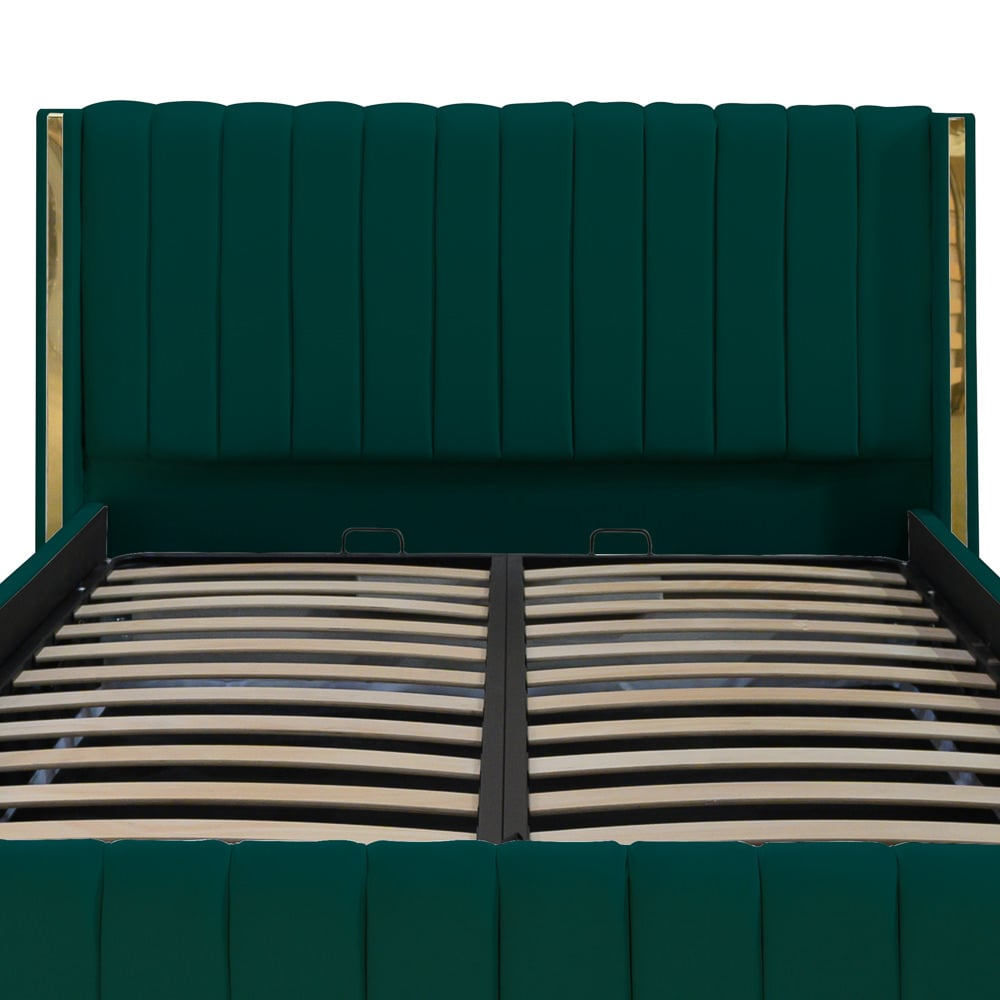 Patul este dotat cu o somieră rabatabilă metalică, ce ascunde un spațiu generos de depozitare.
