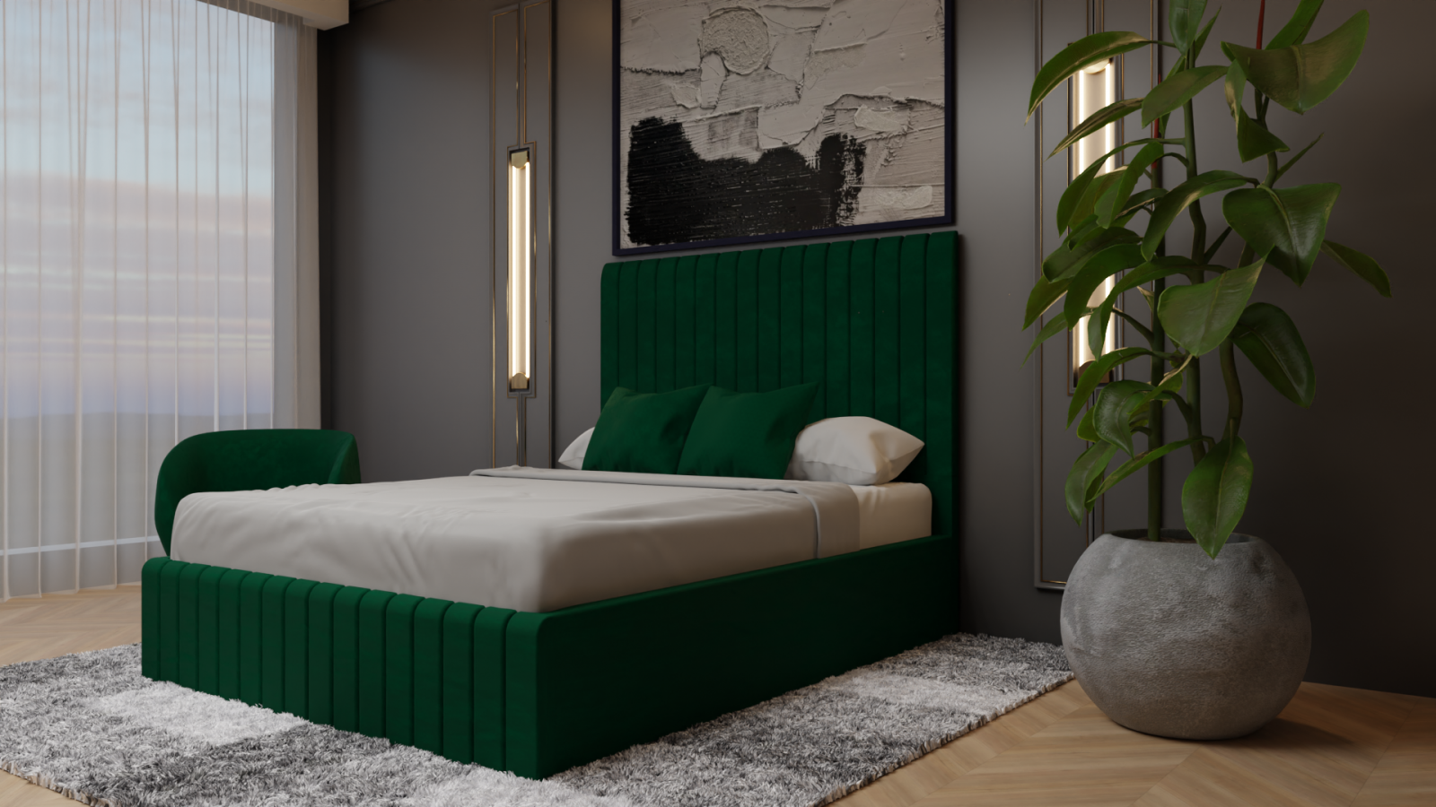 Acest pat tapițat îmbină eleganța cu confortul, oferind un spațiu perfect pentru odihnă și relaxare. Designul modern și tăblia capitonată creează o atmosferă primitoare în orice dormitor.