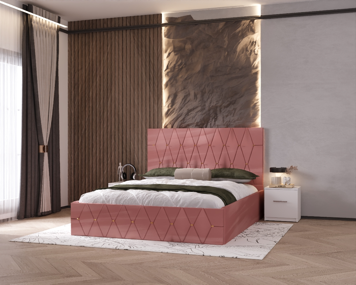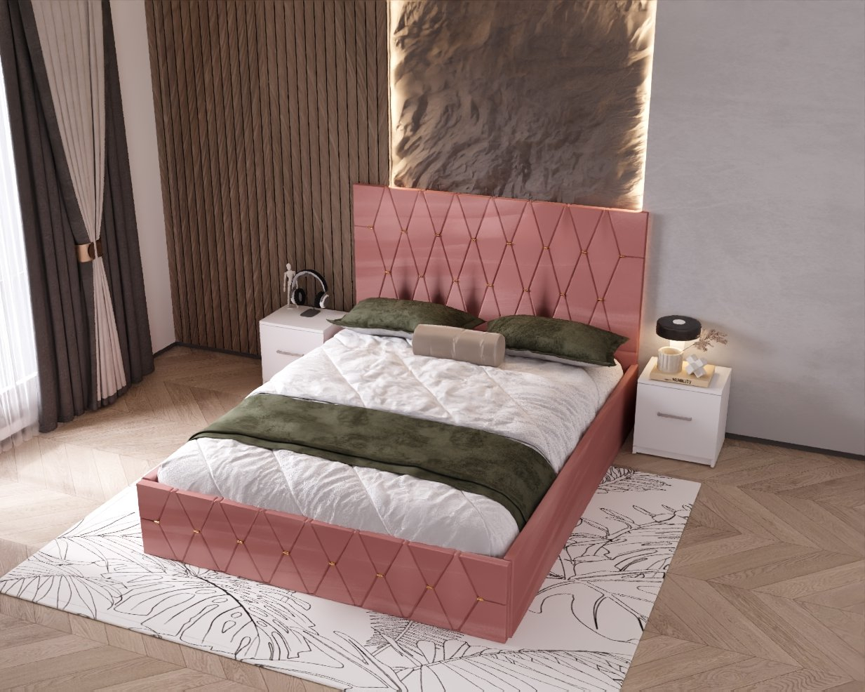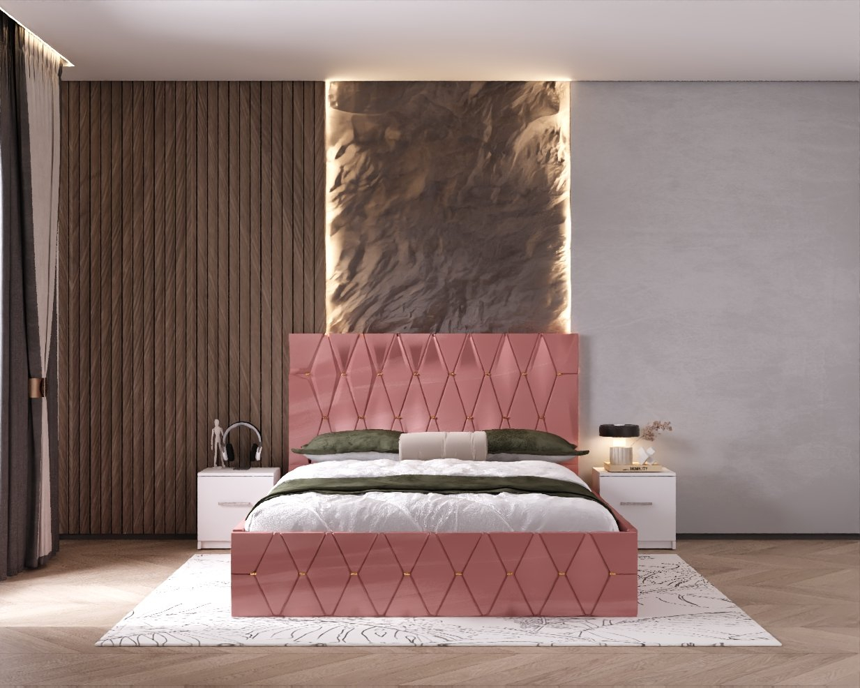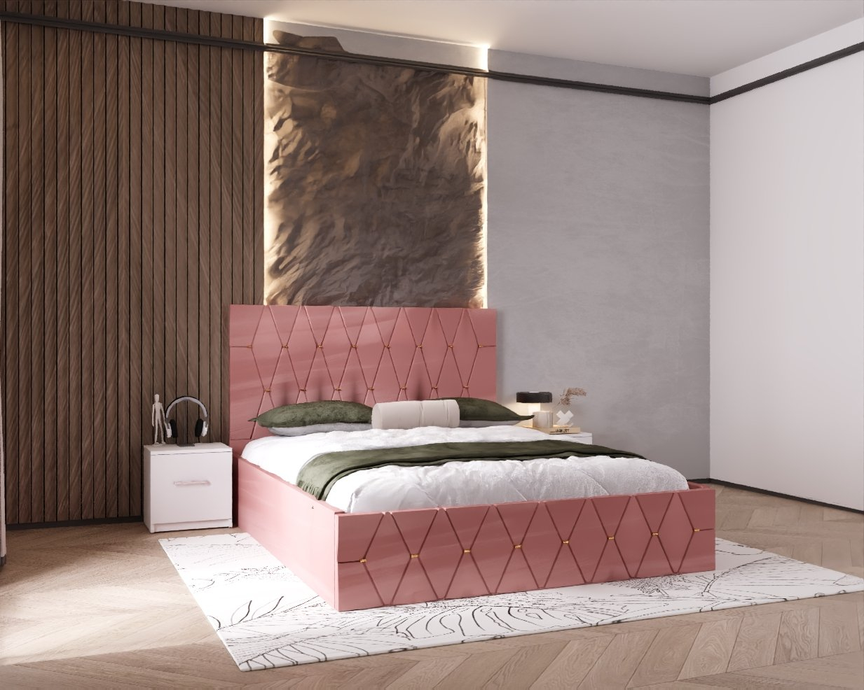 Acest pat tapițat îmbină eleganța cu confortul, oferind un spațiu perfect pentru odihnă și relaxare. Designul modern și tăblia capitonată creează o atmosferă primitoare în orice dormitor.