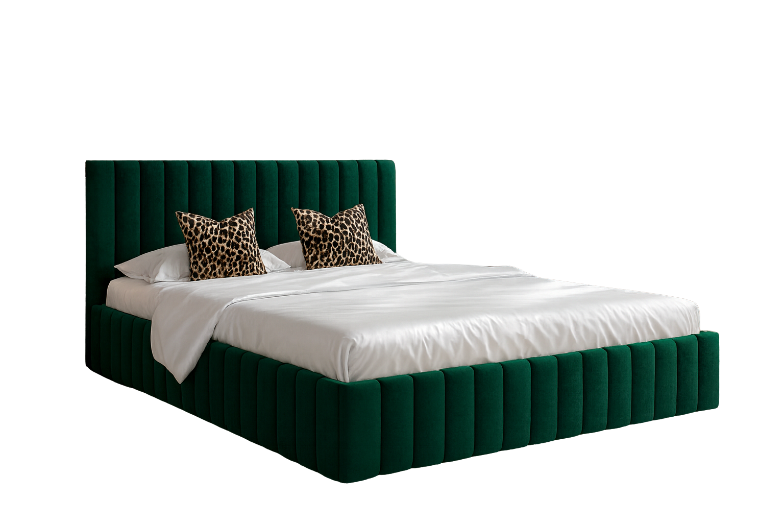 Realizat cu o atenție deosebită la detalii, patul face parte din Colecția Velvet, fiind tapițat integral cu catifea premium, moale la atingere și plăcută vizual. Textura sa fină conferă un aer luxos, iar tăblia înaltă, cu design vertical, oferă sprijin confortabil și un aspect modern.