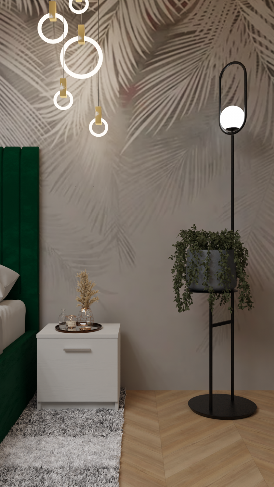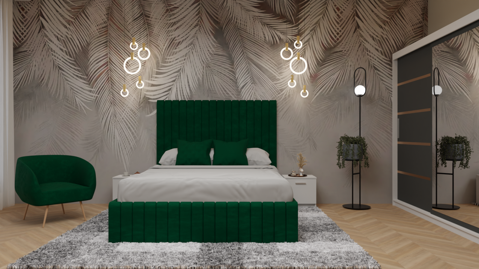 Colecția Dallas se remarcă prin designul modern și elegant, accentuat de riflajele decorative care aduc profunzime și rafinament spațiului. Patul Cairo tapițat în catifea fină, cu tăblie înaltă și linii contemporane, oferă un confort desăvârșit și un plus de stil. Ansamblul creează o atmosferă caldă, echilibrată și sofisticată – ideală pentru un dormitor modern și primitor.