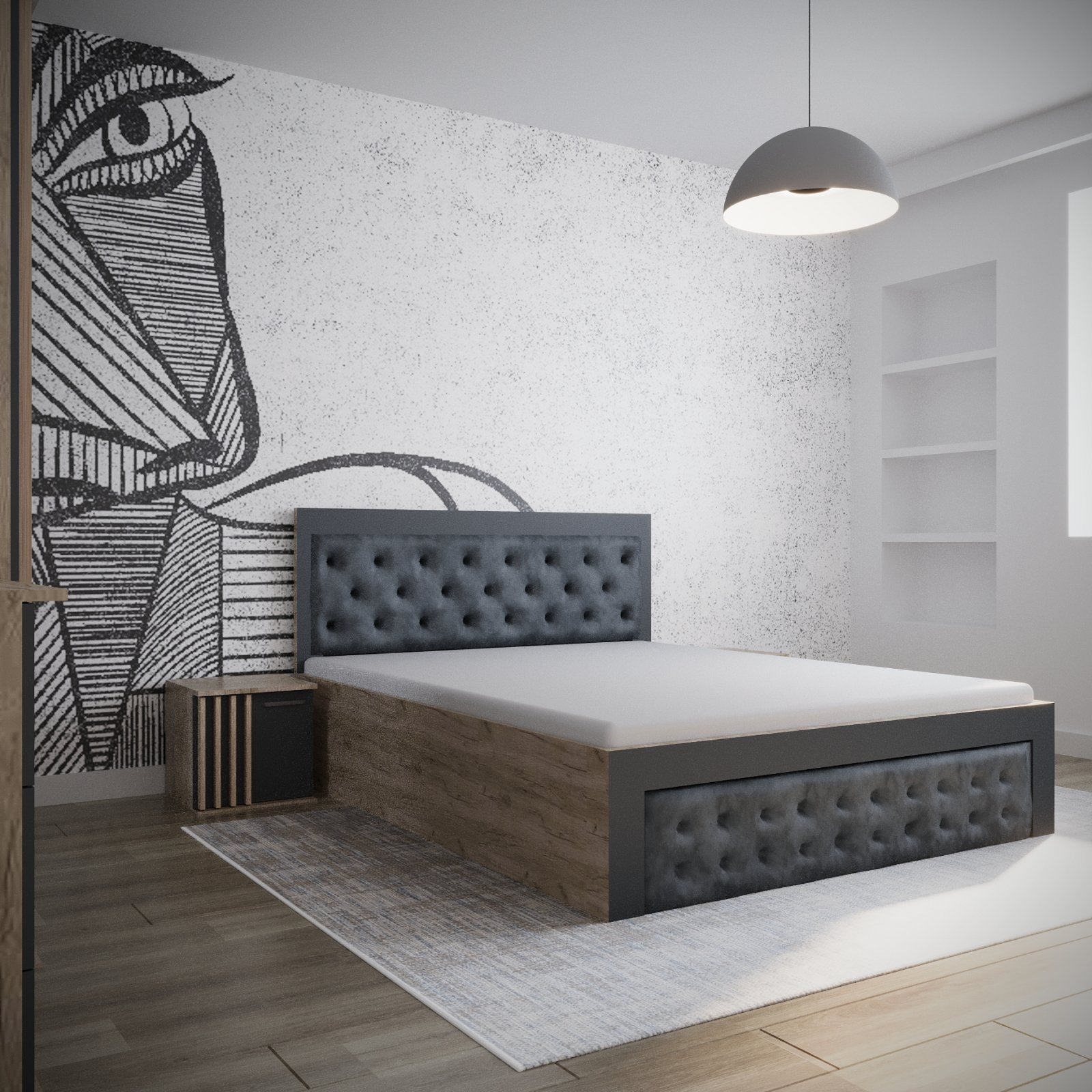 Dormitor Dallas Tapitat Sonoma&Gri Antracit