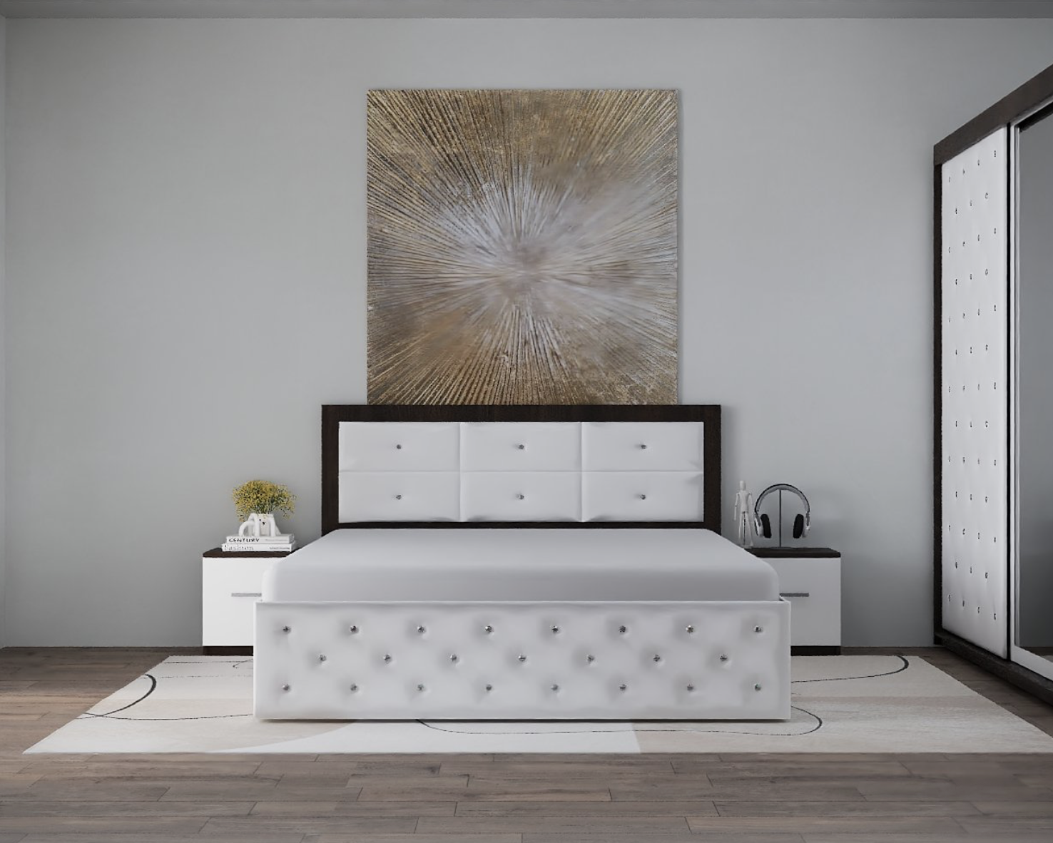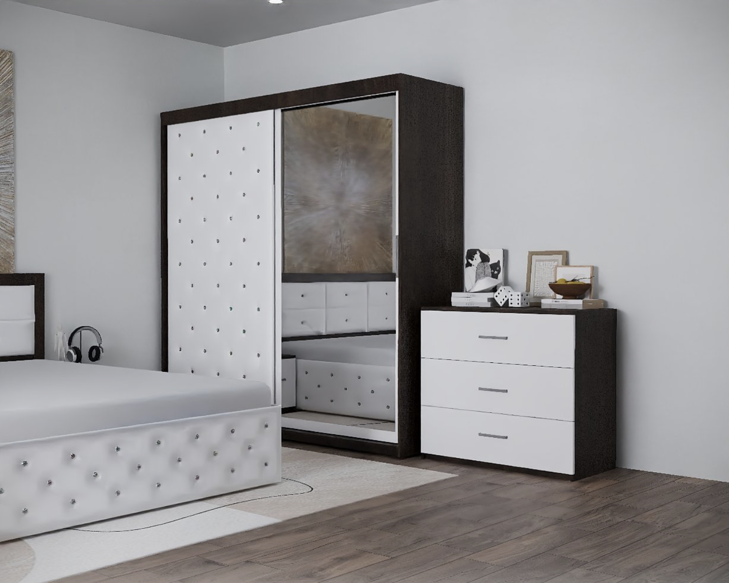 Dormitor Monticelli New Wenge&Alb Tapitat 2 Usi cu Oglinda
