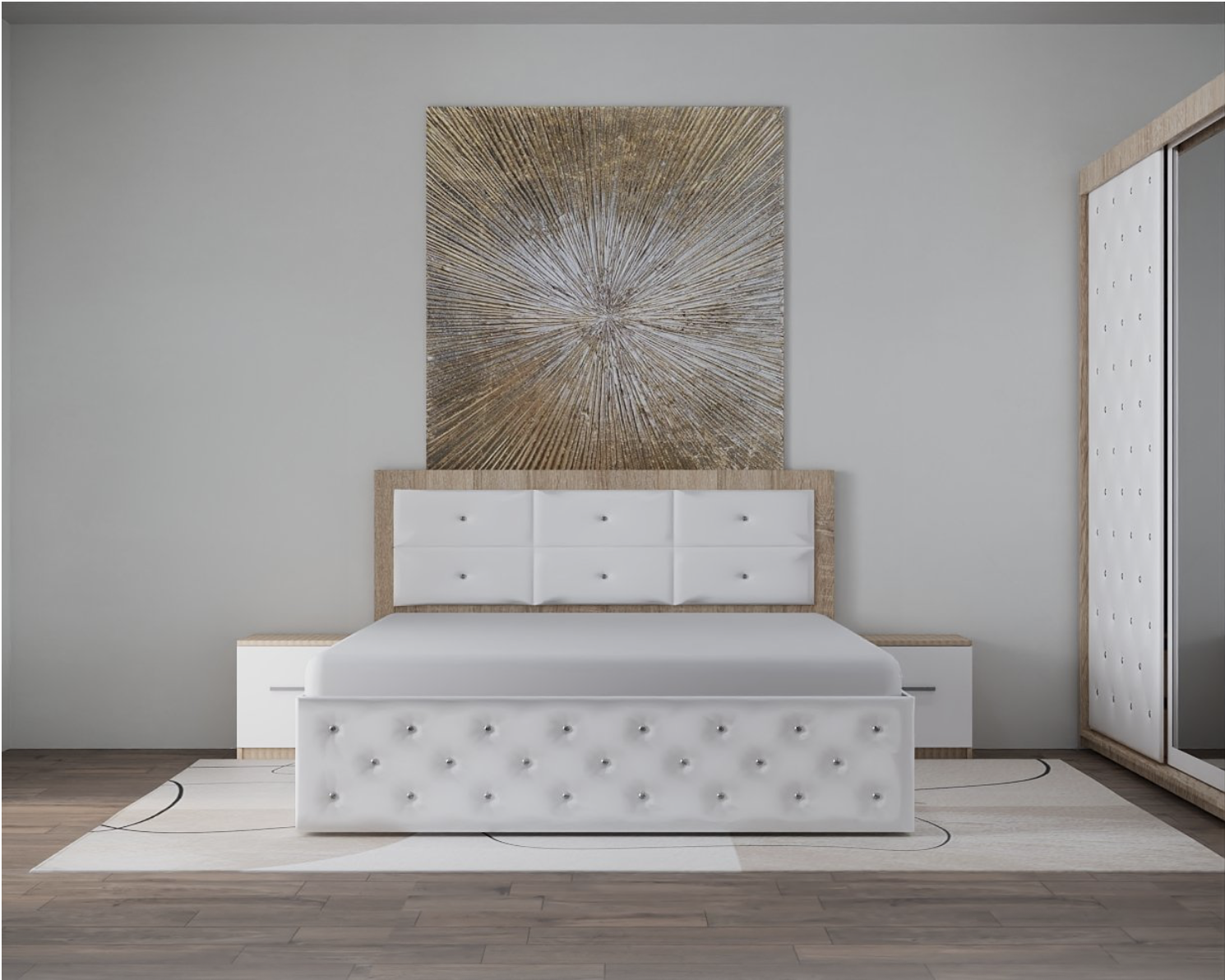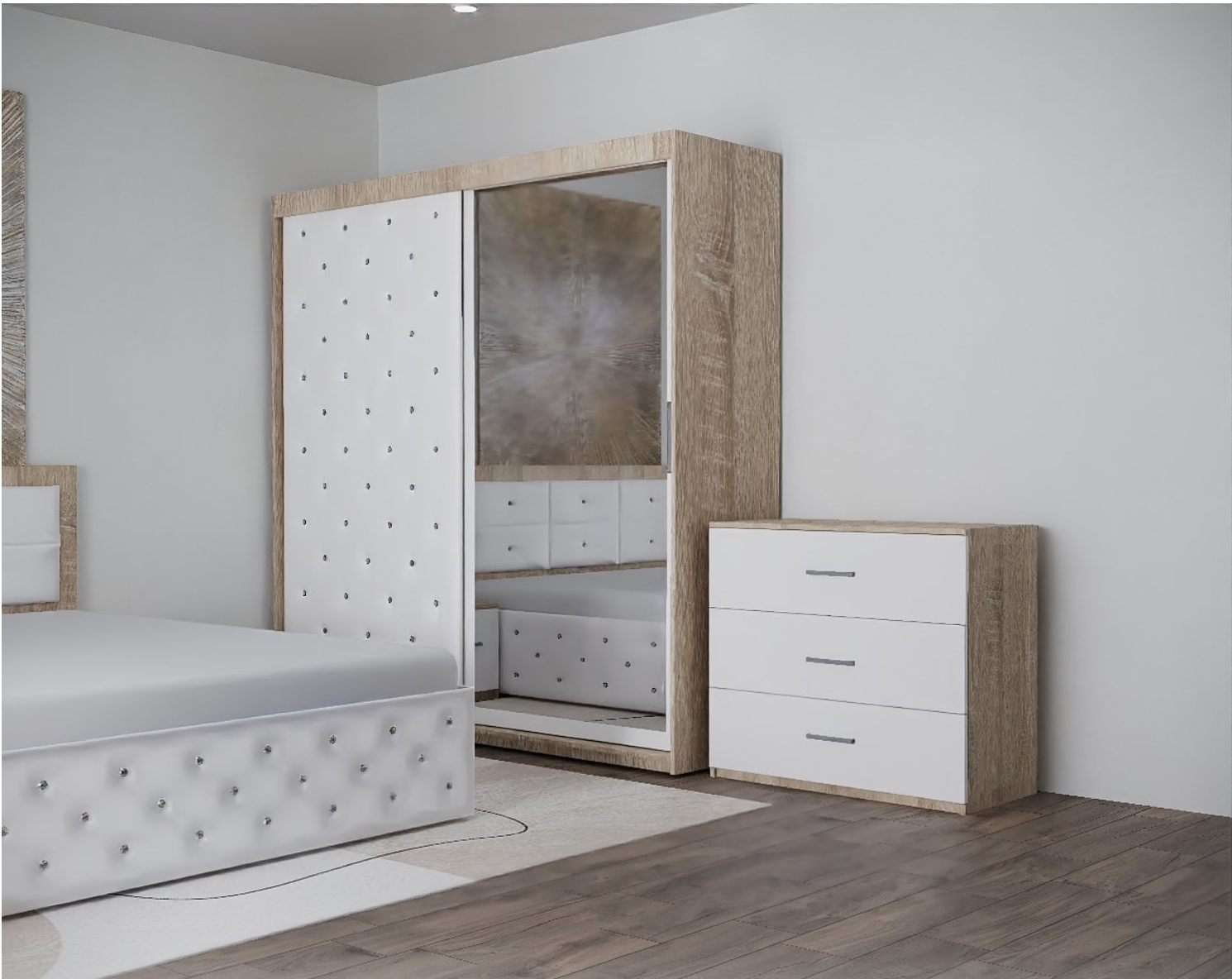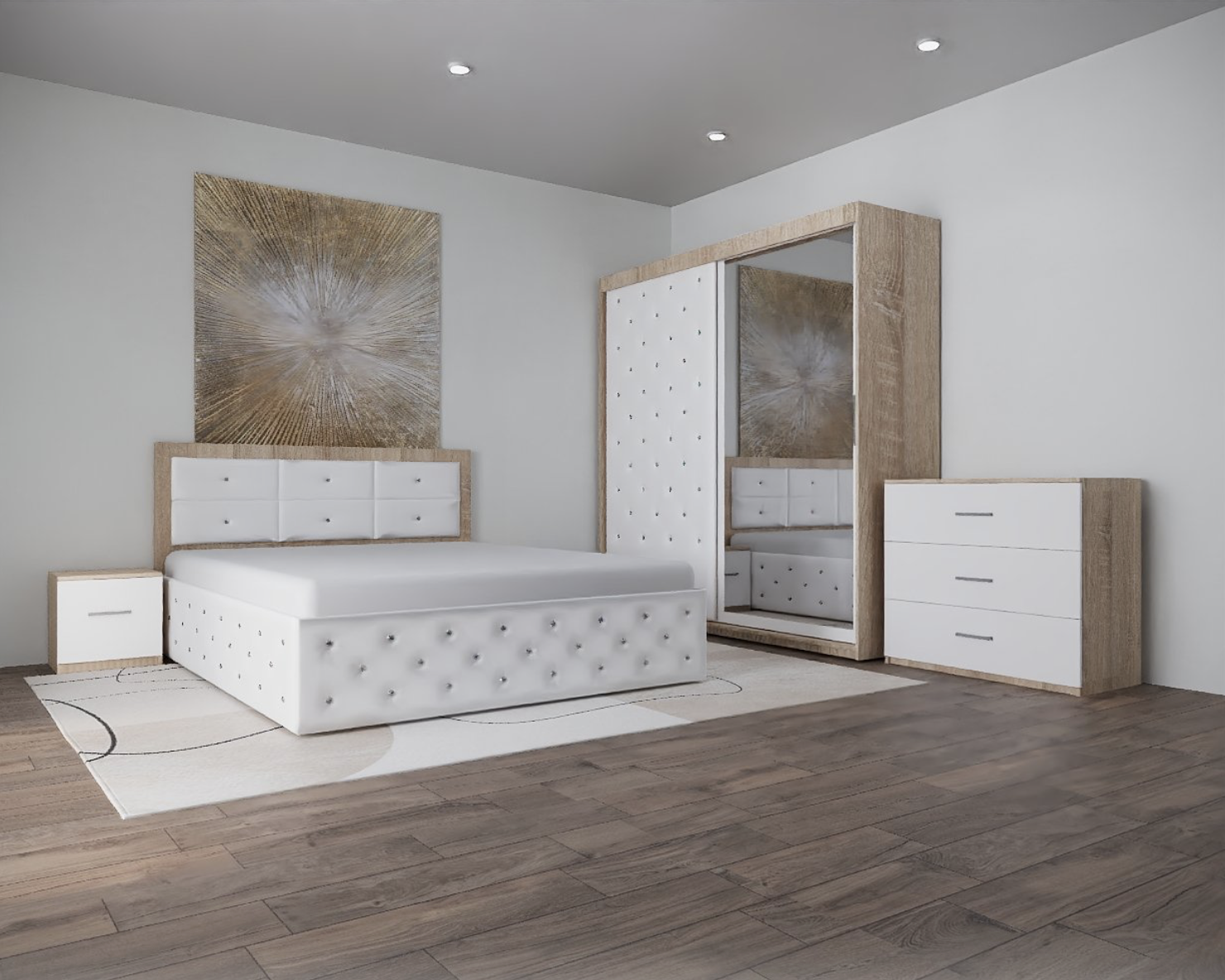 Dormitor Monticelli New Sonoma&Alb Tapitat 2 Usi cu Oglinda