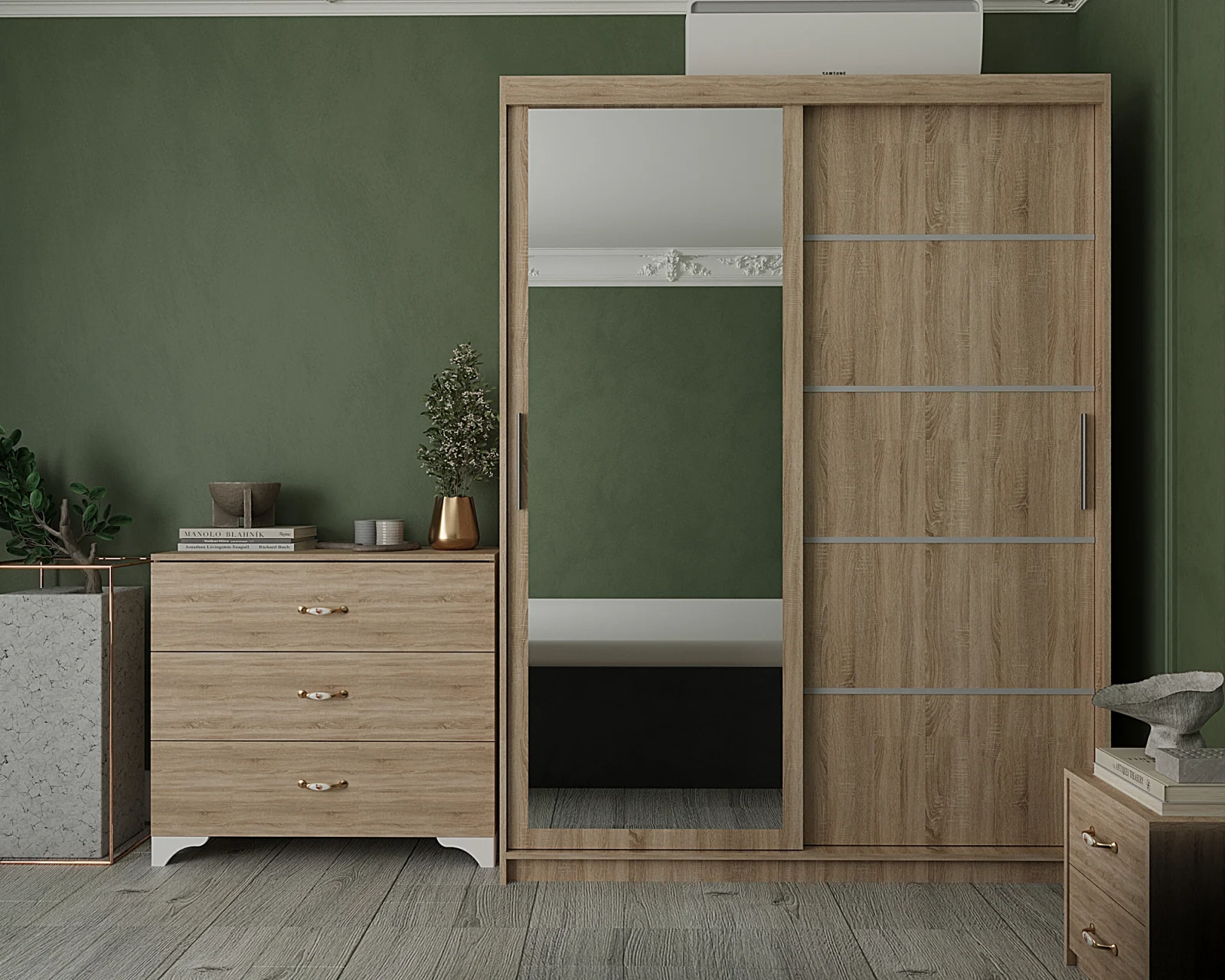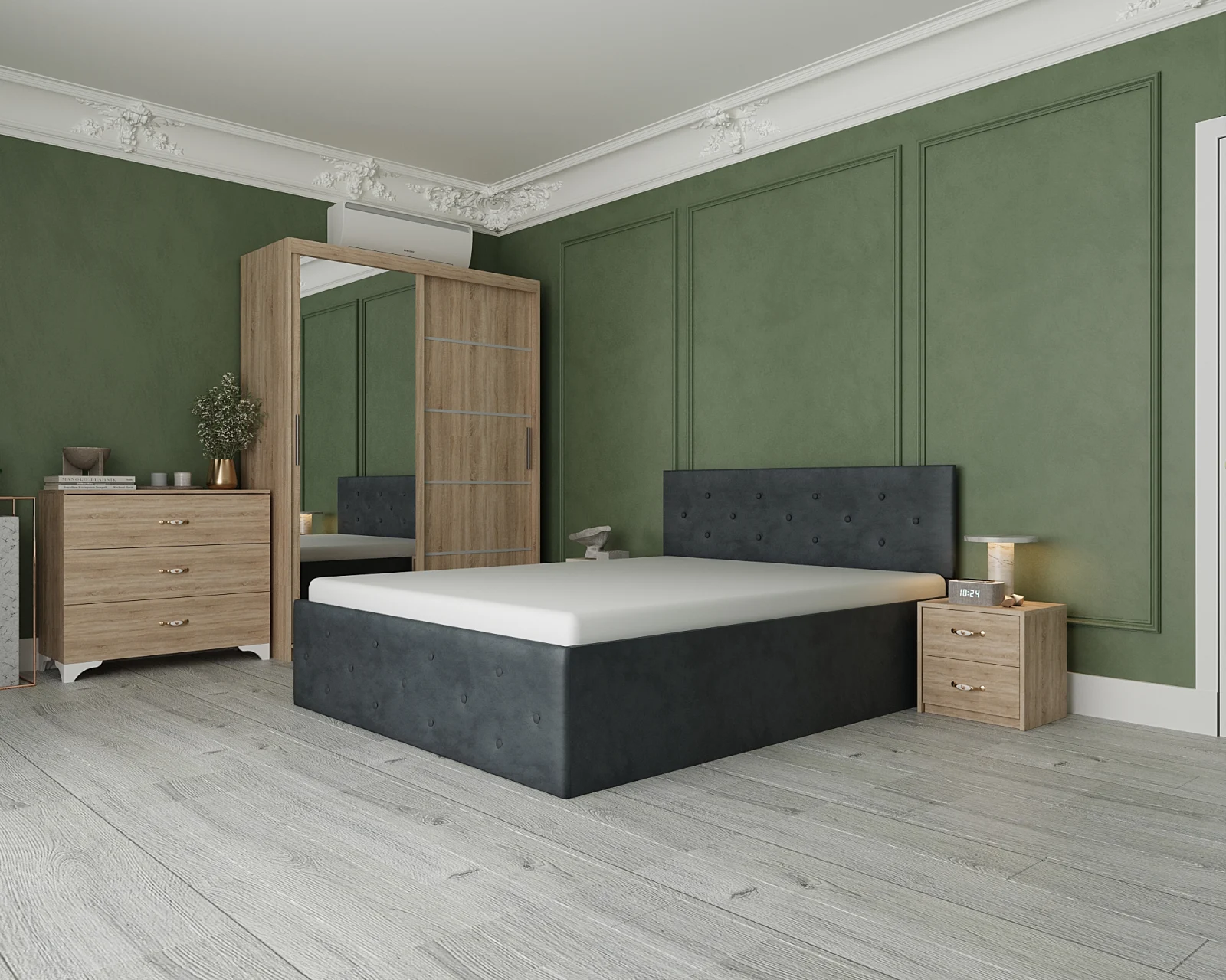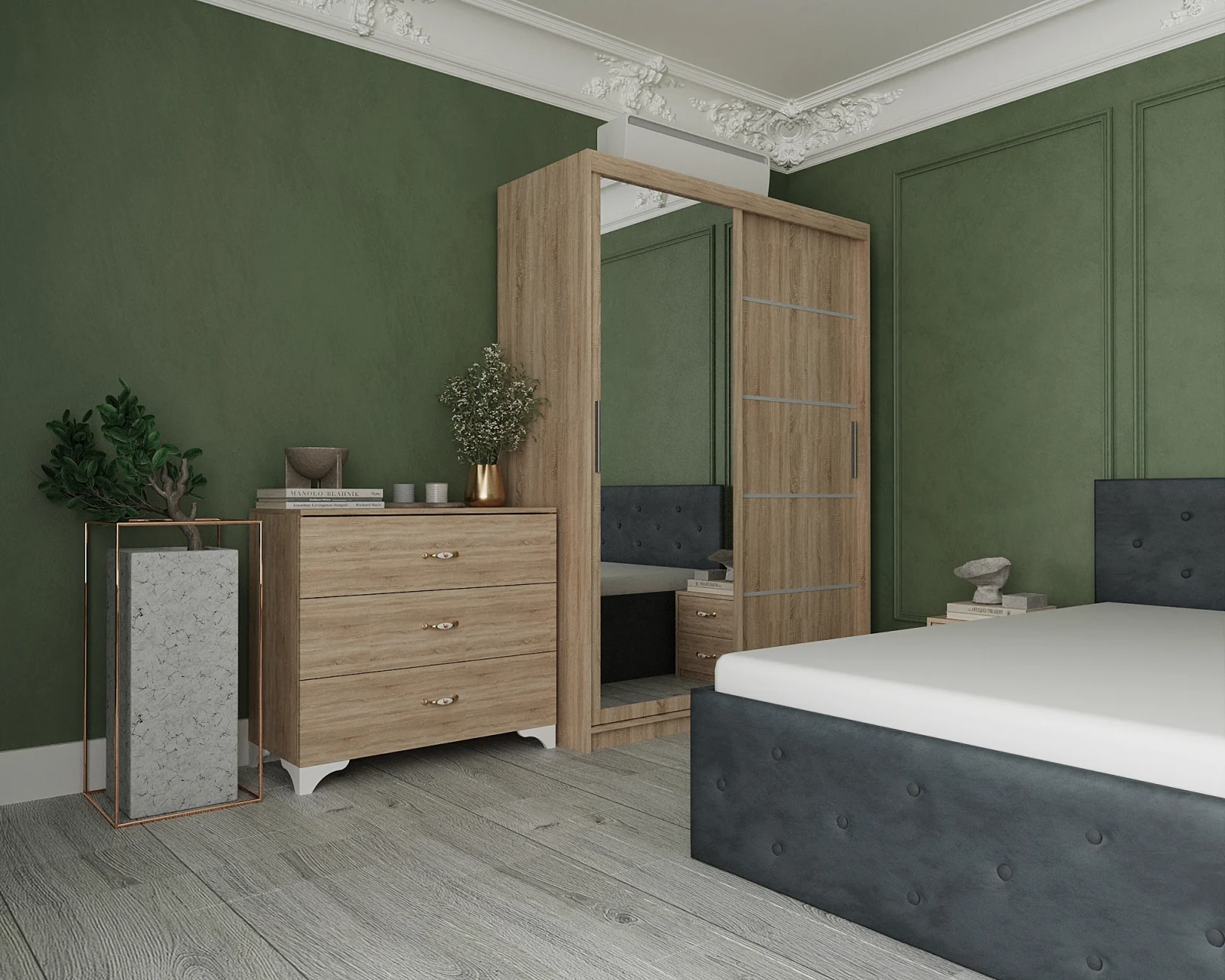 Dormitor Nevada Tapitat Sonoma&Gri 2 usi cu Oglinda