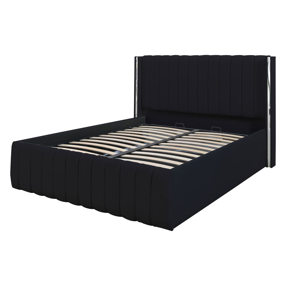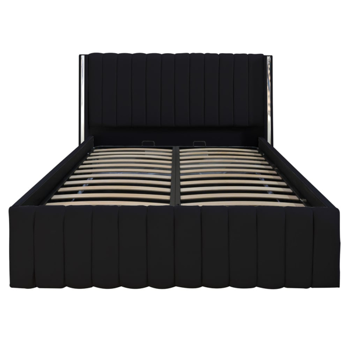 Patul este dotat cu o somieră rabatabilă metalică, ce ascunde un spațiu generos de depozitare.