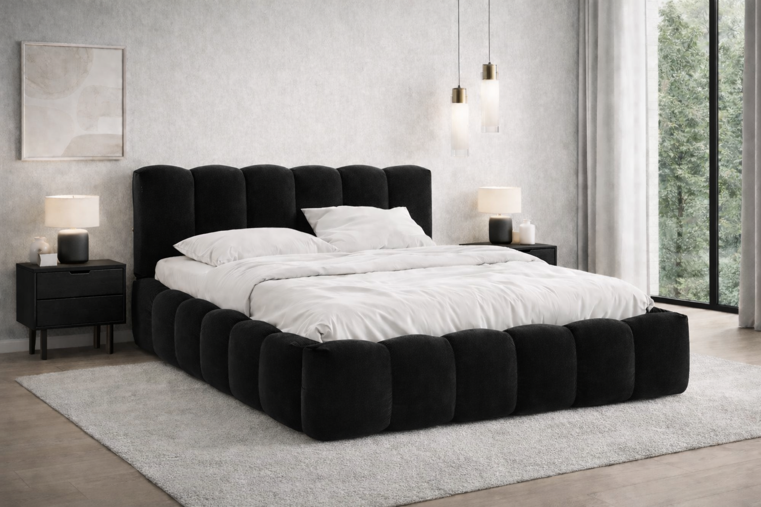 Structura sa conturată în module „puf” oferă un efect vizual aparte, inspirat din forme organice și arhitectură contemporană. Tapițeria premium, plăcută la atingere, conferă un plus de eleganță și creează o experiență tactilă superioară.