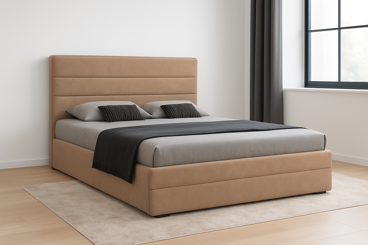 Acest pat tapițat îmbină eleganța cu confortul, oferind un spațiu perfect pentru odihnă și relaxare. Designul modern și tăblia capitonată creează o atmosferă primitoare în orice dormitor.