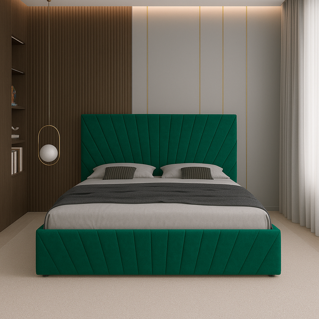 Pat tapițat Solis – eleganță și confort într-un design modern. Realizat din catifea premium, plăcută la atingere și ușor de întreținut, acest model impresionează prin tăblia sa înaltă cu design radial inspirat de razele soarelui. Disponibil în mai multe nuanțe rafinate, Solis transformă orice dormitor într-un spațiu sofisticat și relaxant.
