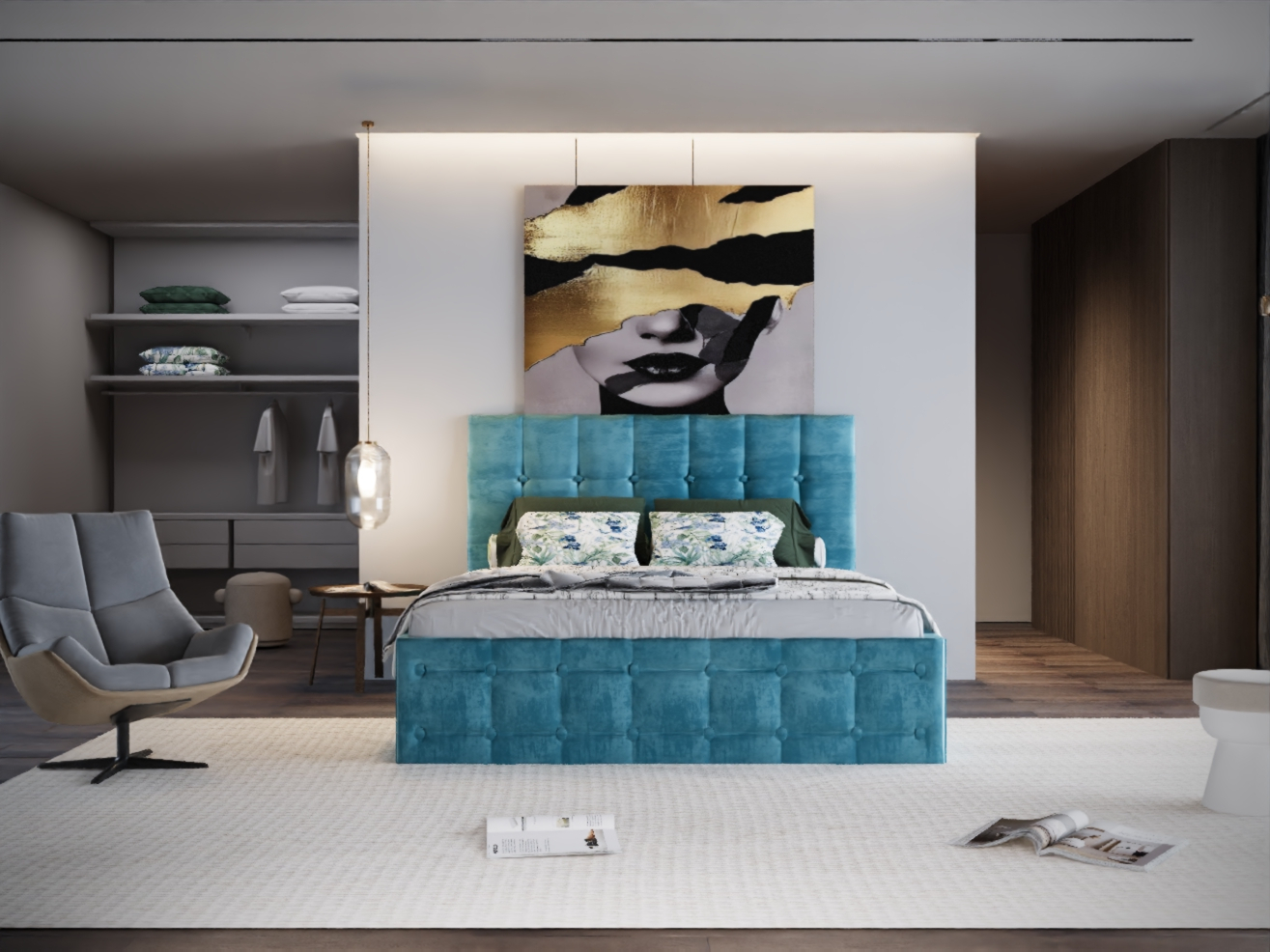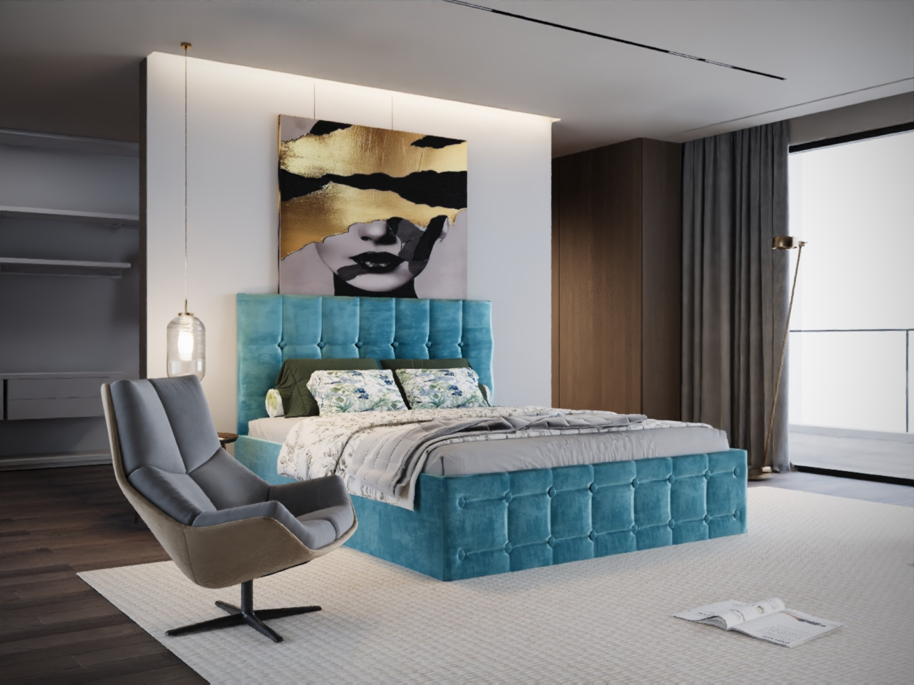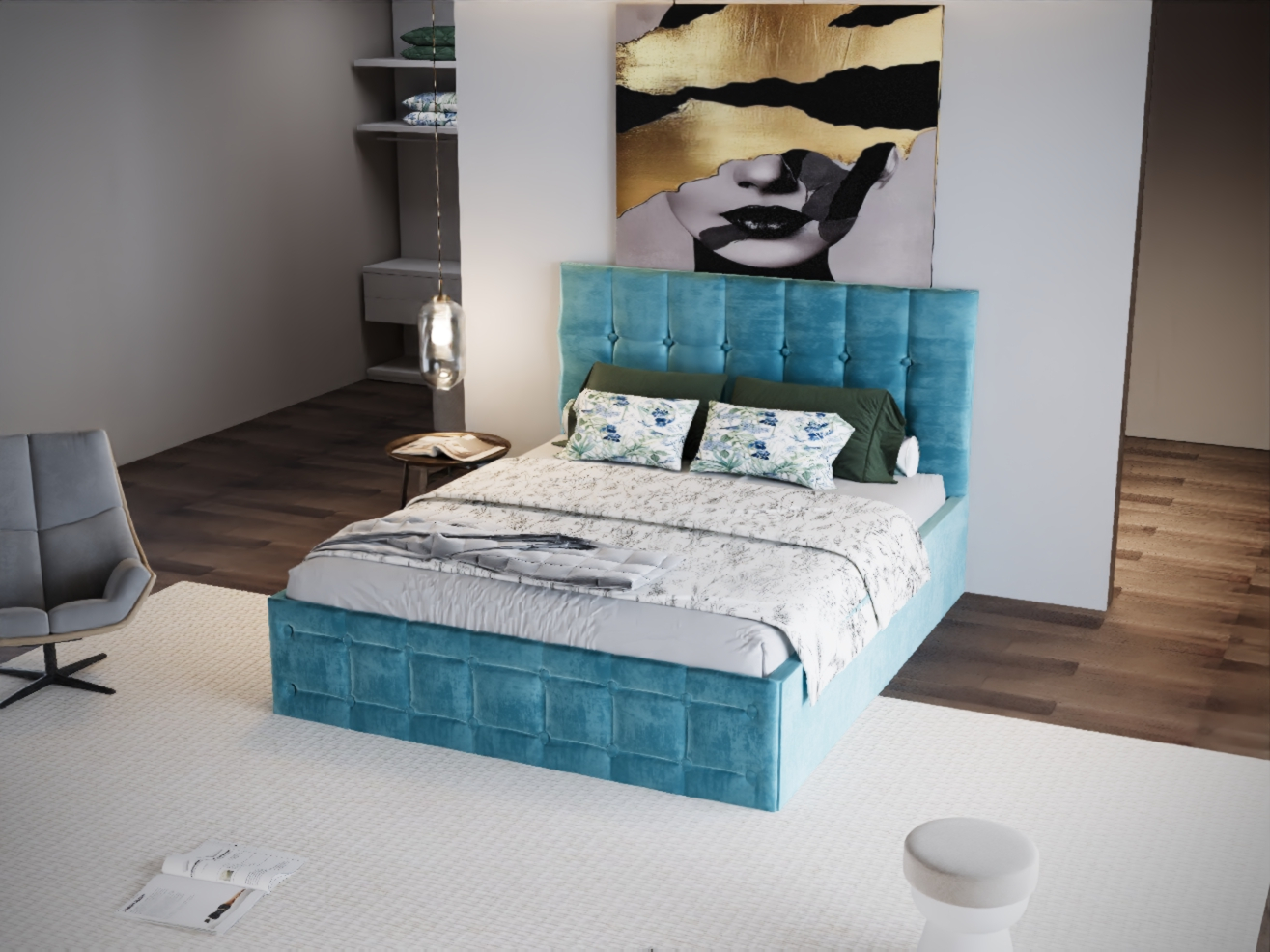 Pat Regal Tapitat Turcoaz fara Saltea 180x200