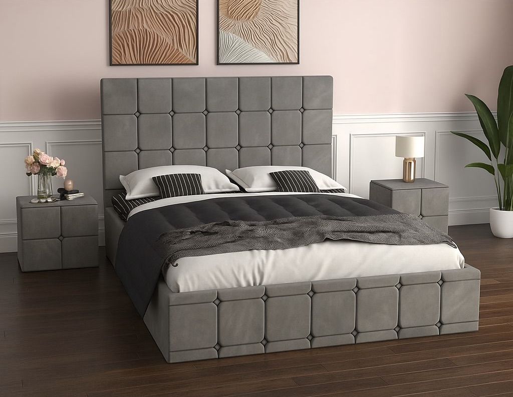 Set Pat Regal Tapițat cu Noptiere – Eleganță și Confort în Dormitorul Tău