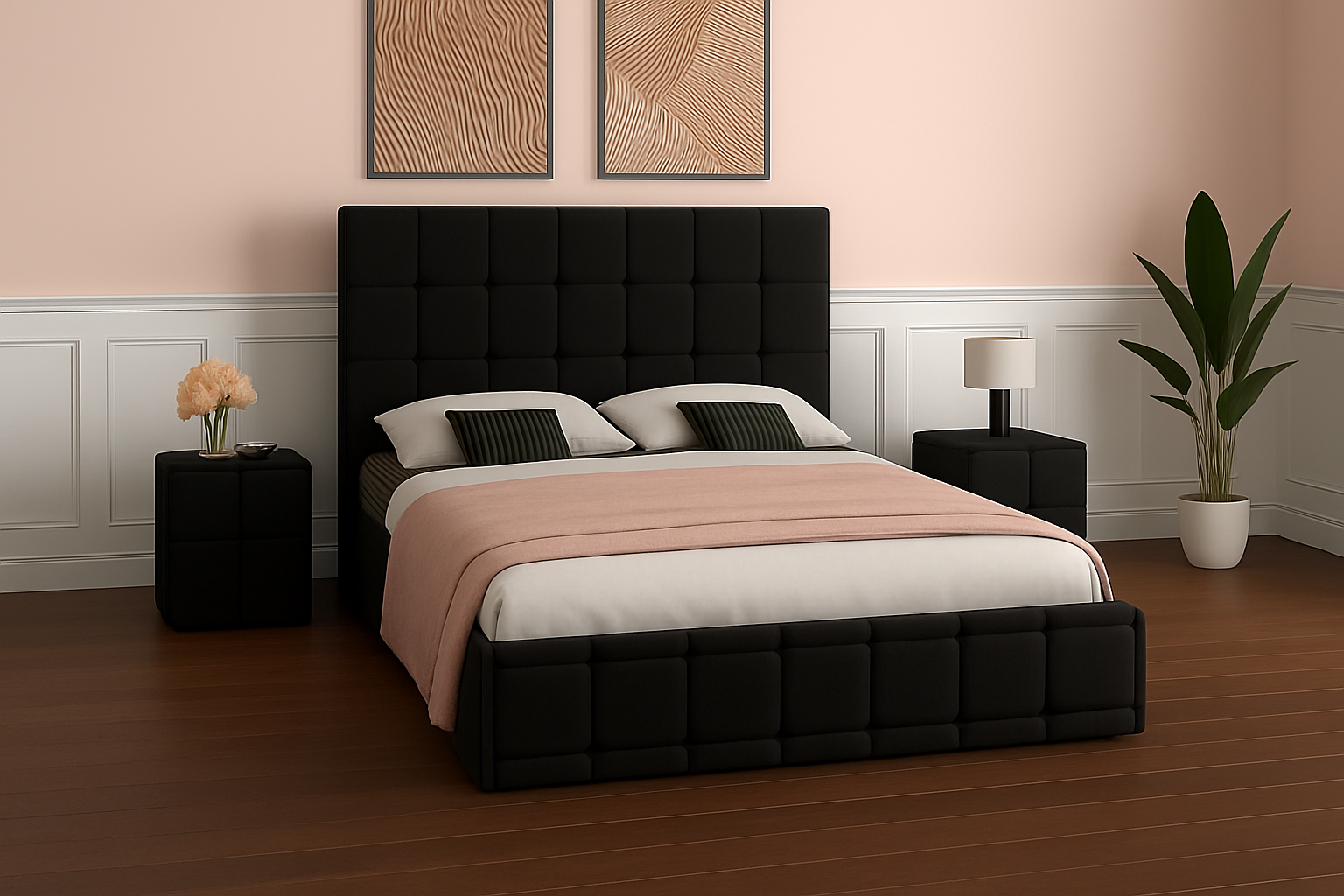 Set Pat Regal Tapițat cu Noptiere – Eleganță și Confort în Dormitorul Tău
