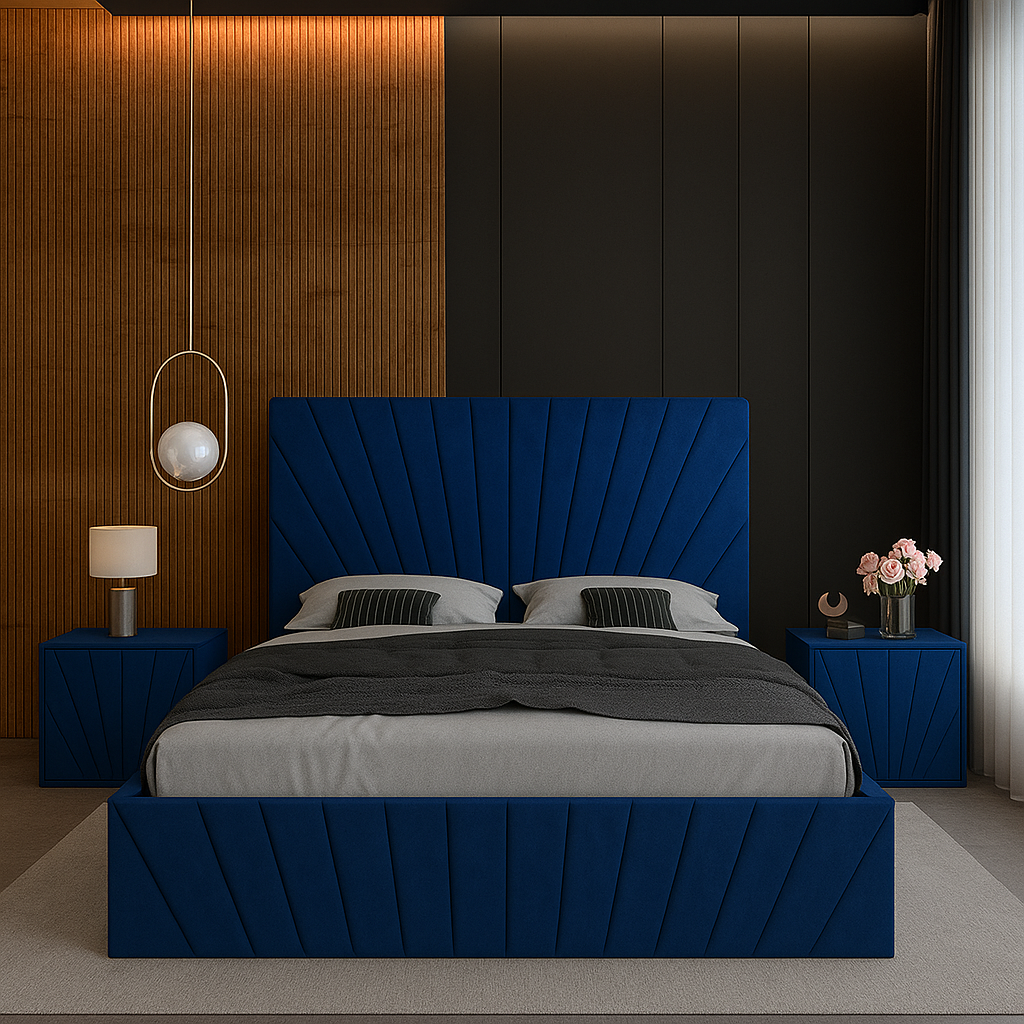 Colecția Solis aduce armonie și stil prin combinația perfectă dintre designul modern și confortul premium. Patul tapițat cu tăblie înaltă și detalii geometrice este completat de noptierele tapițate asortate, practice și elegante, care oferă un plus de unitate vizuală și rafinament. Realizată din catifea fină, în nuanțe sofisticate, Solis transformă dormitorul într-un spațiu cald, modern și plin de personalitate.