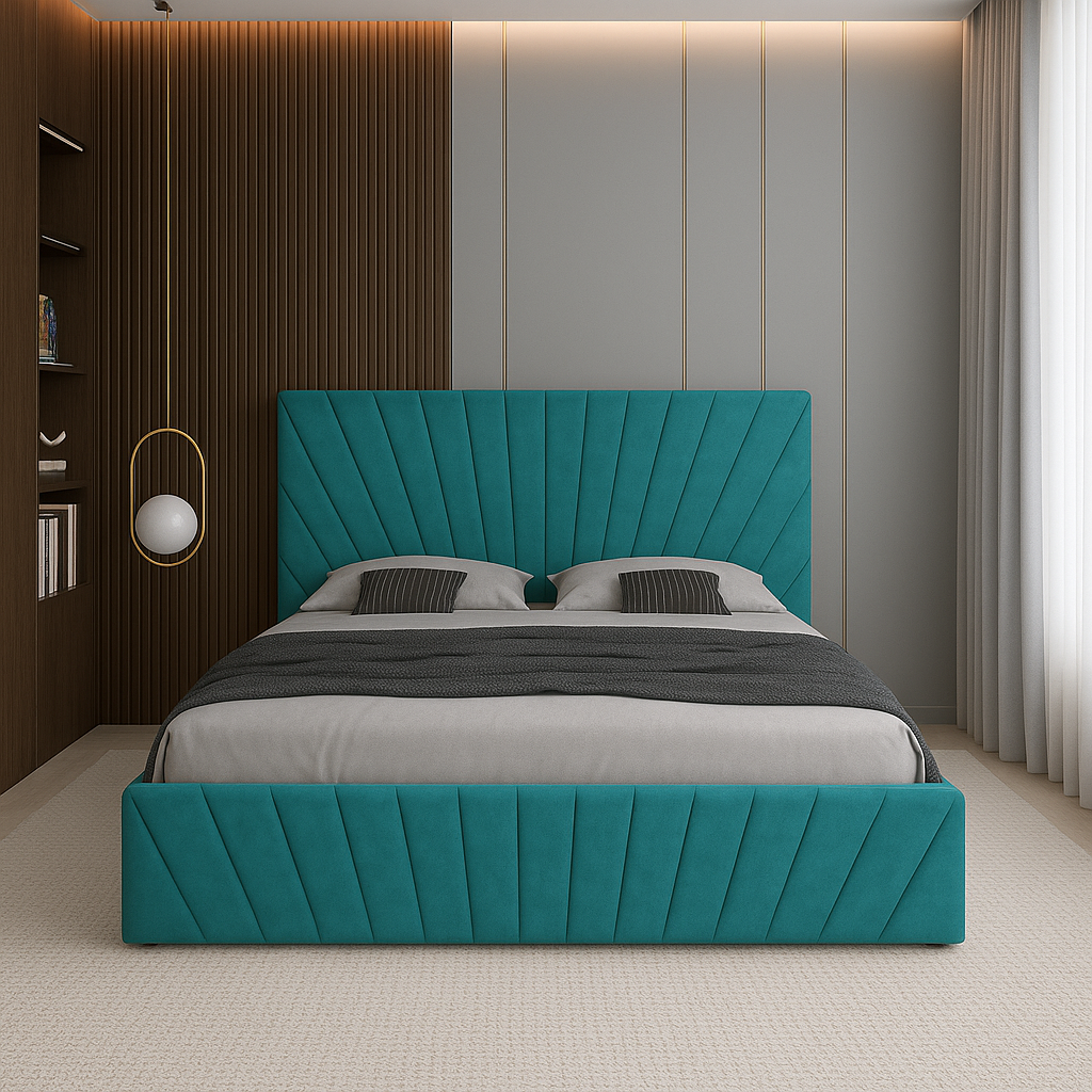 Pat tapițat Solis – eleganță și confort într-un design modern. Realizat din catifea premium, plăcută la atingere și ușor de întreținut, acest model impresionează prin tăblia sa înaltă cu design radial inspirat de razele soarelui. Disponibil în mai multe nuanțe rafinate, Solis transformă orice dormitor într-un spațiu sofisticat și relaxant.